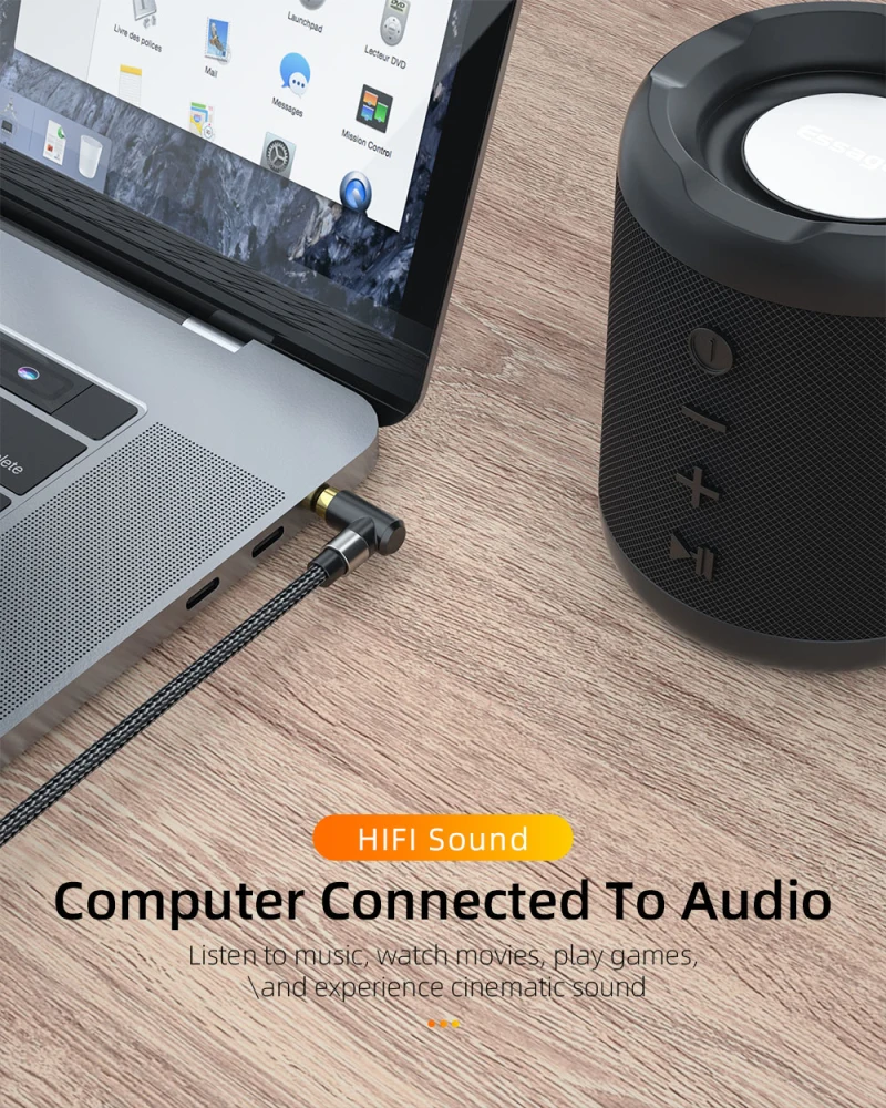 Аудиокабель Essager Aux, Hi-Fi стерео штекер-штекер, 90 градусов, под прямым углом, 3,5 мм, универсальный аудиокабель оплетенный вспомогательный