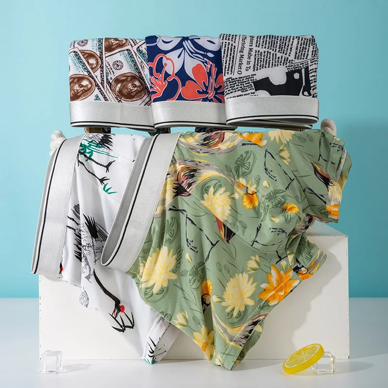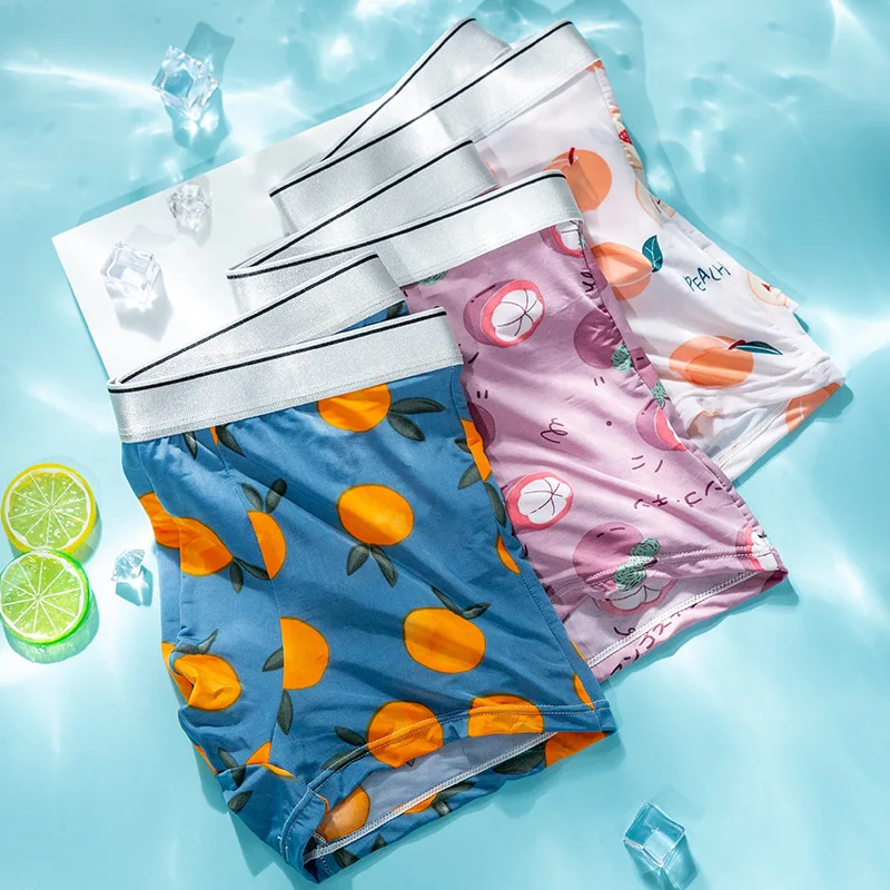 Мужское дышащее нижнее белье из ледяного шелка, летние трусы-боксеры, легкие модные бесшовные шорты с принтом для молодых студентов, женское нижнее белье