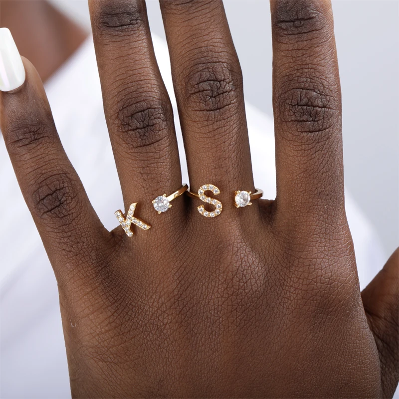 Кольца с буквами инициала для женщин, регулируемые открытые кольца ...