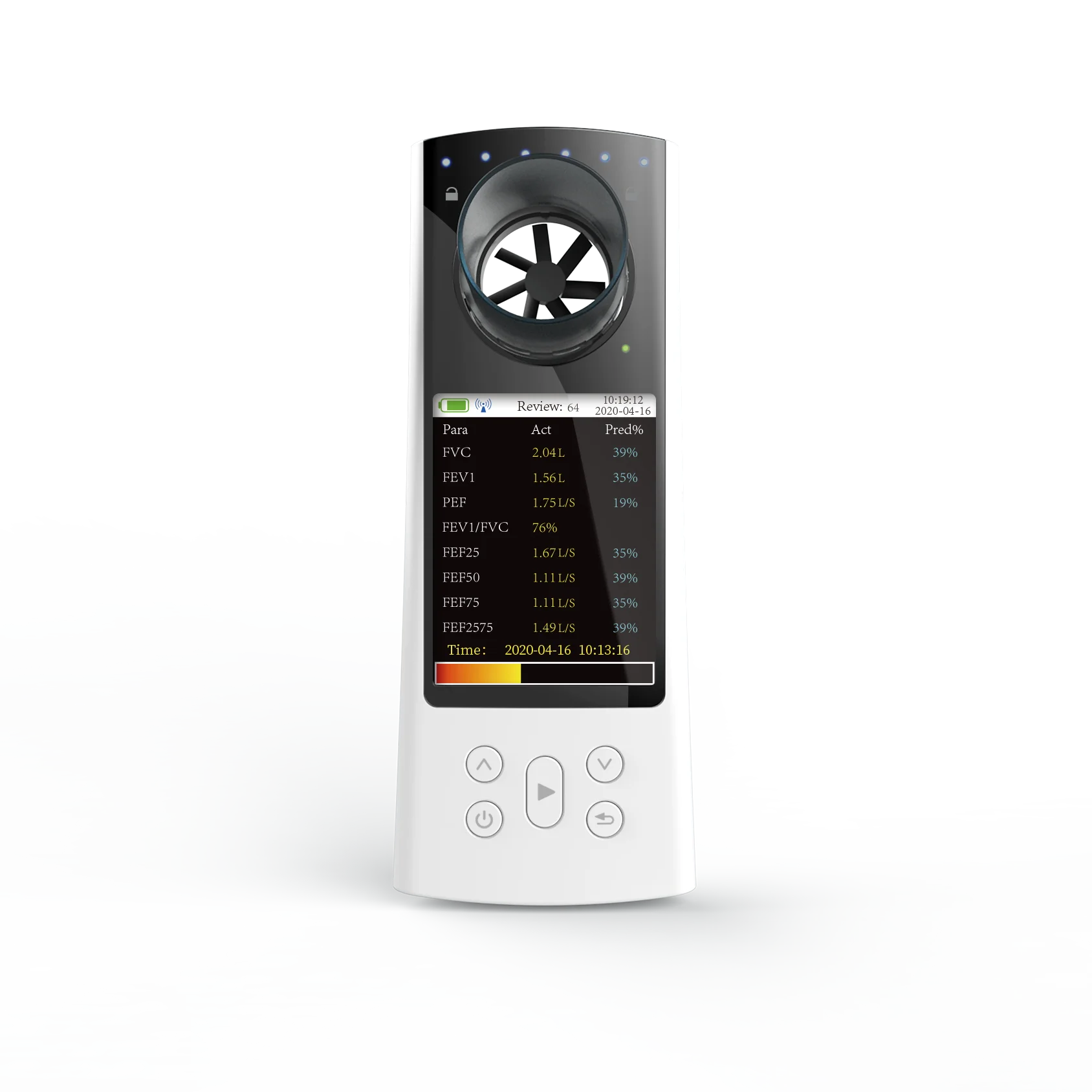 Спирометр-это ручное оборудование для проверки состояния легких, принимает режим приема инфракрасного сигнала для измерения предметов, связанных с FVC, и он применим для больниц, клиник, семьи для рутинного тестирования.
