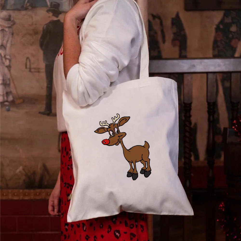 Новая тканевая сумка-тоут с рождественским оленем, Женская дорожная сумка для покупок, многоразовая сумка через плечо с защитой окружающей среды