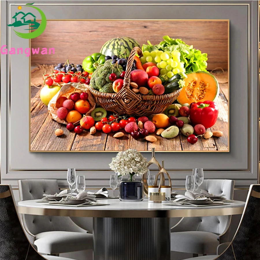 Картина 5D "сделай сам" с овощами и фруктами в корзине, алмазная картина сделай сам, полный узор с едой, вышивка крестом, мозаика, подарок для детей