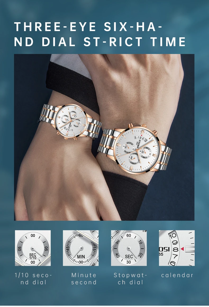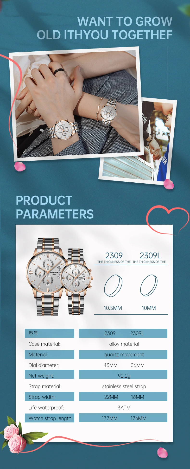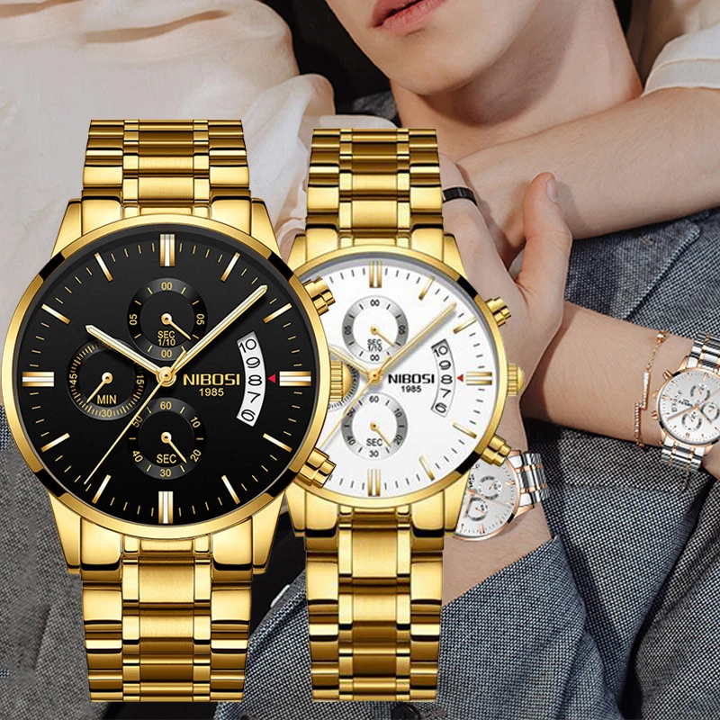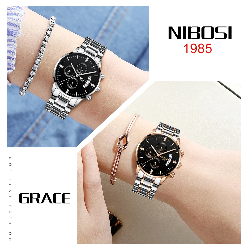 Часы наручные NIBOSI для мужчин и женщин, брендовые Роскошные Кварцевые водонепроницаемые Модные для влюбленных, из нержавеющей стали