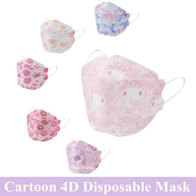 10 шт.пакет одноразовые маски с 3D рисунком из мультфильма для взрослых модные розовые 4-слойные нетканые защитные маски для женщиндевочек