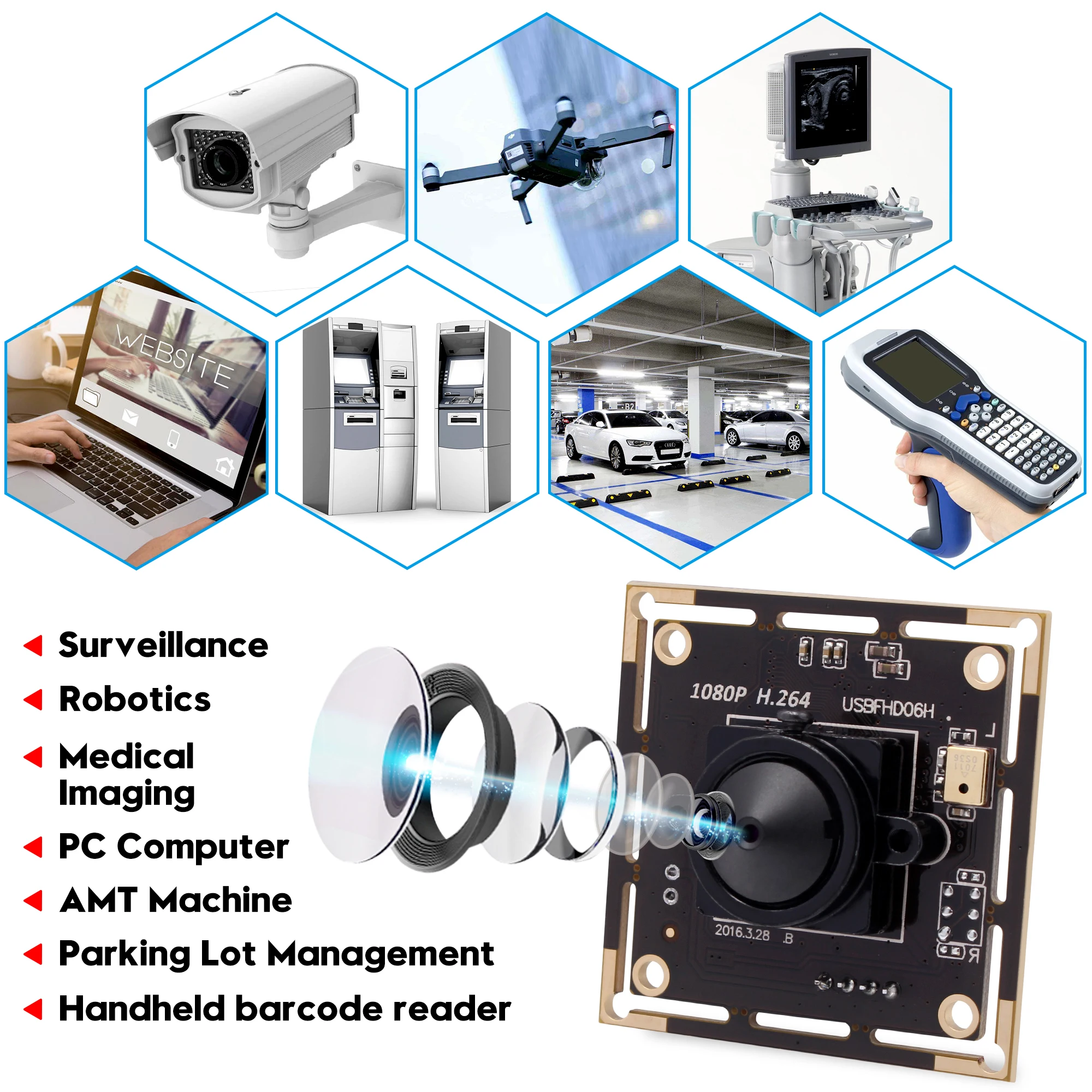 Машинное оборудование, Все-в-одном, POS оборудование, STB, smart box TV BOX, advisisement player, светодиодный дисплей, АвтоматическийТорговый автомат, Сейф, ноутбук, видео телефон двери, MID, планшет внешний, оценщик, медицинское оборудование, закон на местеКонтроль, дверной звонок и кнопочная система, система кошачий глаз, простая система безопасности, Система обучения, Интерактивная система,Автомобильный регистратор данных. Проект видео захвата, машина кредитной карты, посещаемость машины, система голосования, высокоскоростное видеоУстройство съемки, система экзамена, система обучения вождению, Промышленная камера, Биологический микроскоп, коробка внутри наблюдения, микро HDНаблюдение, эндоскоп, Медицинское вспомогательное оборудованиеИ т. Д.