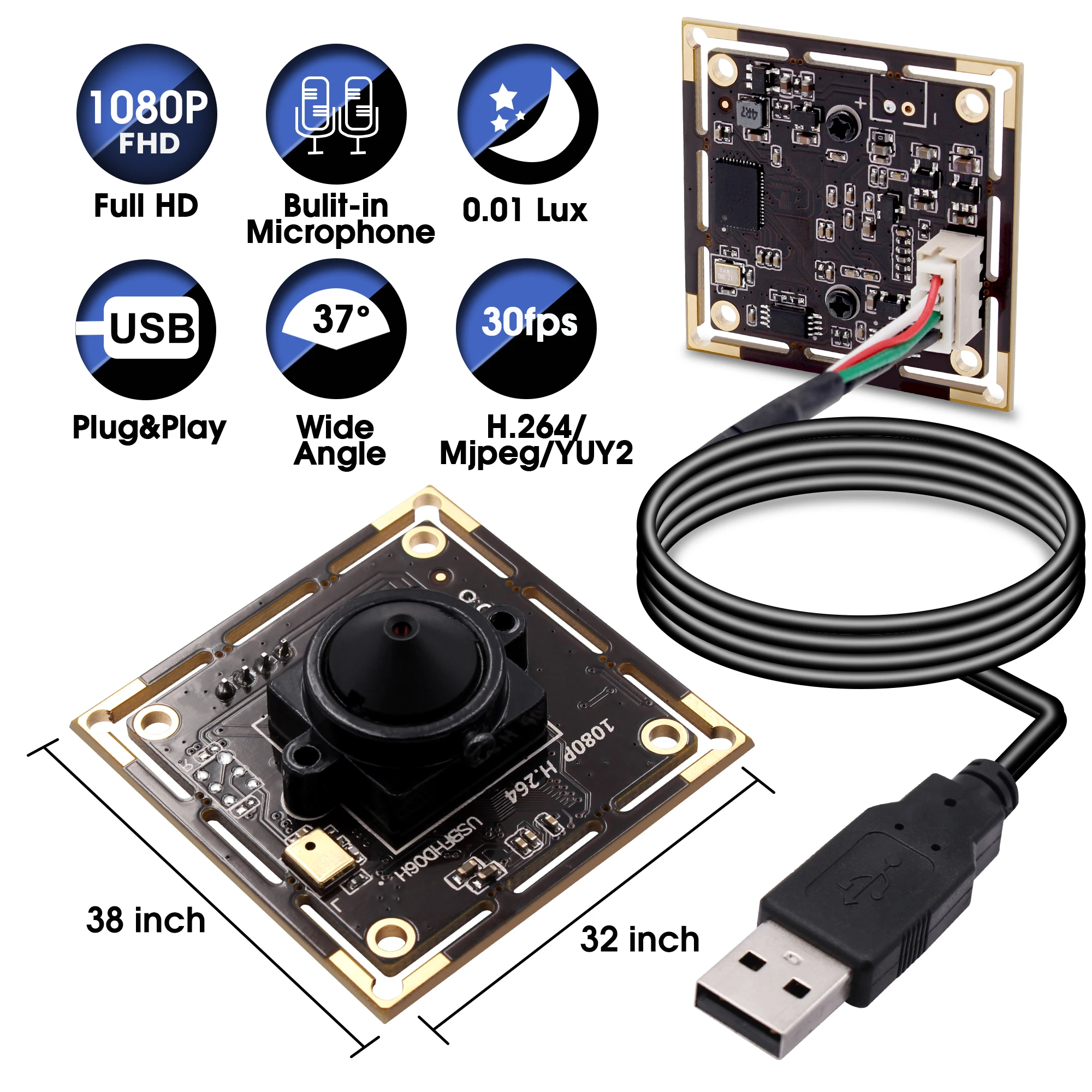 1) 1 шт. 2mp H.264 usb камера со стандартным 3,7 мм объектив