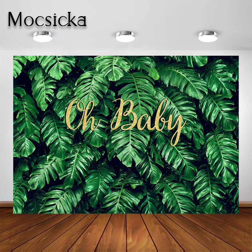Mocsicka фон с зелеными золотыми листьями для детской вечеринки зеленые тропические пальмы фон для вечерние украшение Вечерние