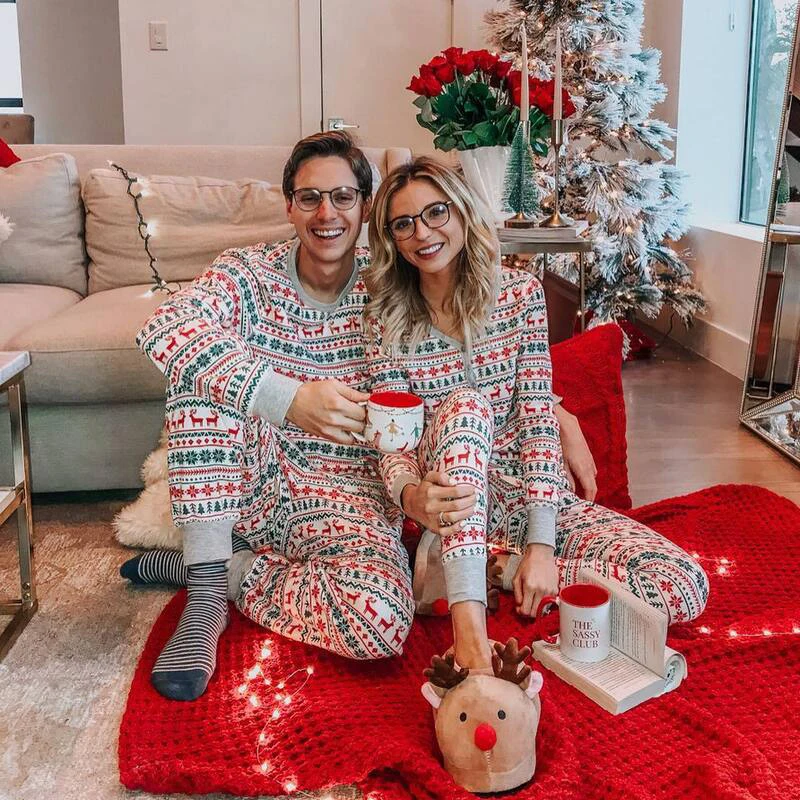 Новый домашний костюм с принтом рождественского оленя для родителей...