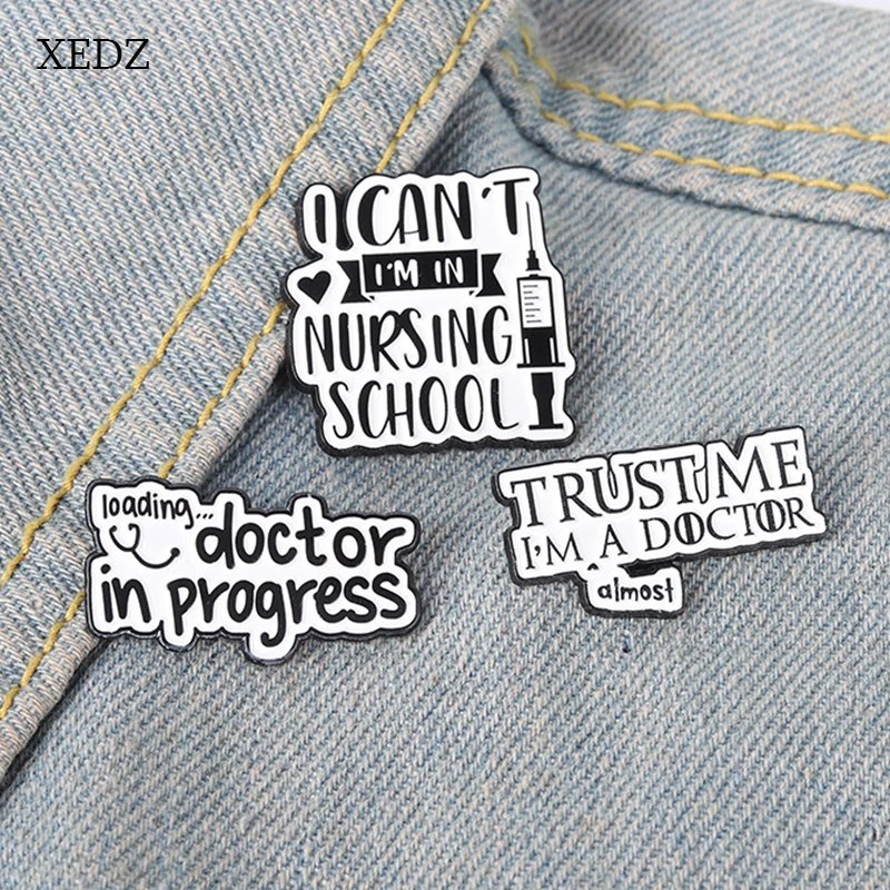 XEDZ 2021 Новый мультяшный с гравировкой текста доверие Врачи Медсестры в движении эмалевый кулон инъекция стетоскоп значок ювелирный подарок