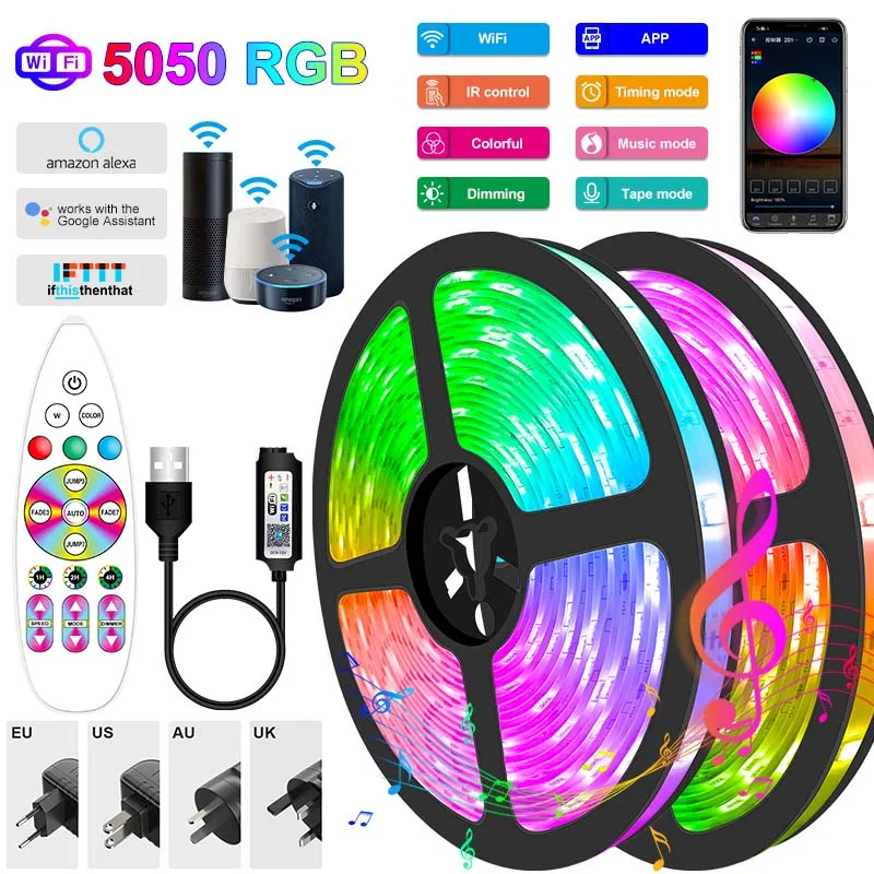 Светодиодная лента RGB 5050 с поддержкой Wi-Fi, Alexa, светодиодная...