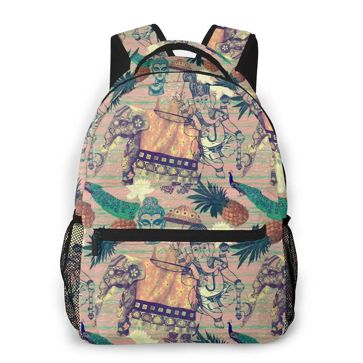 Рюкзак для девочек-подростков, школьные ранцы с принтом индийских слонов, ананасов, цветов, Повседневная Дорожная сумка на плечо