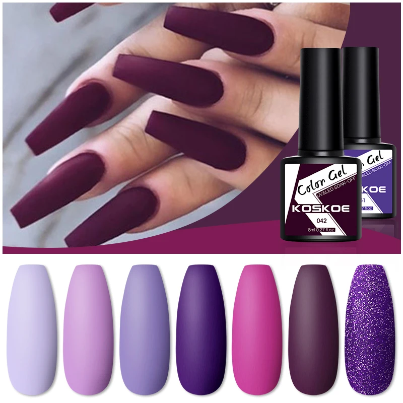 KOSKOE 8 мл фиолетовый цветной гель, искусственное покрытие, полуперманентный Гибридный отмачиваемый фотолак, все для маникюра