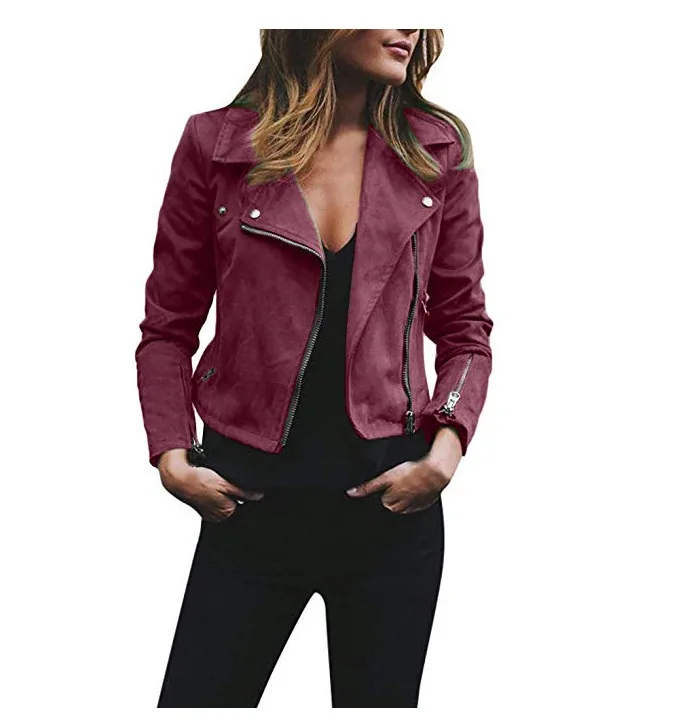 Пальто для женщин женские замшевые кожаные куртки на молнии в байке...
