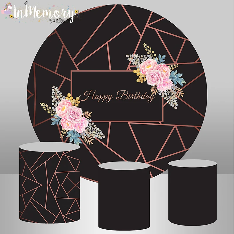 Черные и розовые золотые линии цветок свадебный душ Свадебная вечеринка круглый фон крышка Круглый фон торт стол цилиндрические крышки