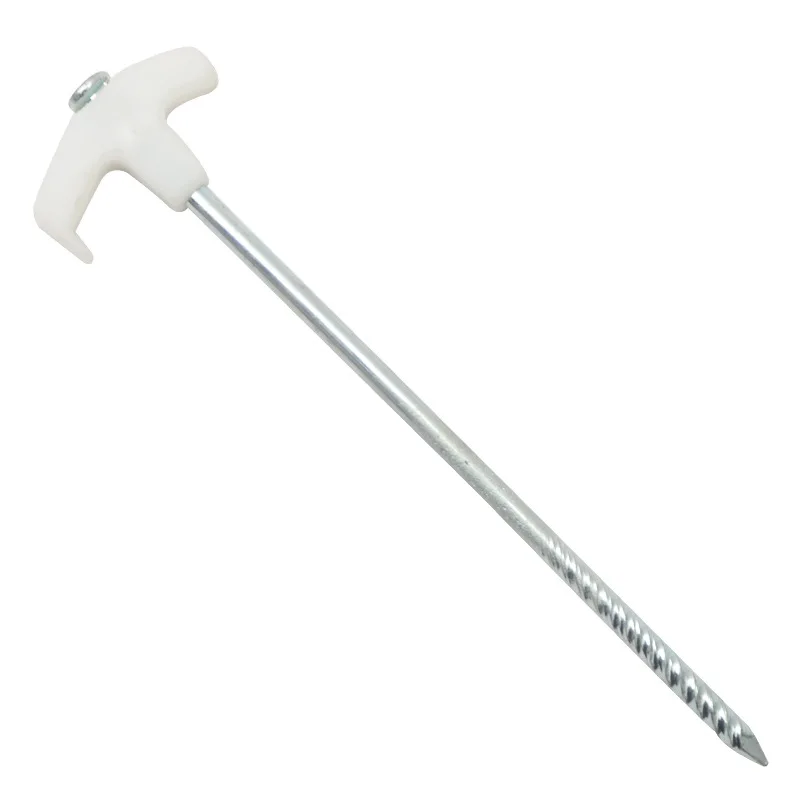 Гвозди из нержавеющей стали высокой твердости, вставленные в почву, очень большое усилие, высокая устойчивость к ветру, сложно согнуть.