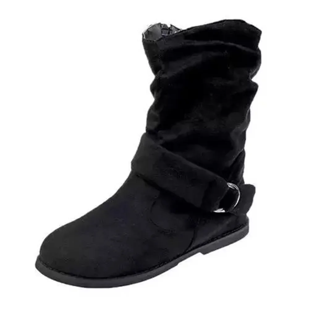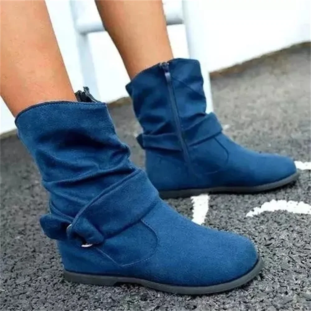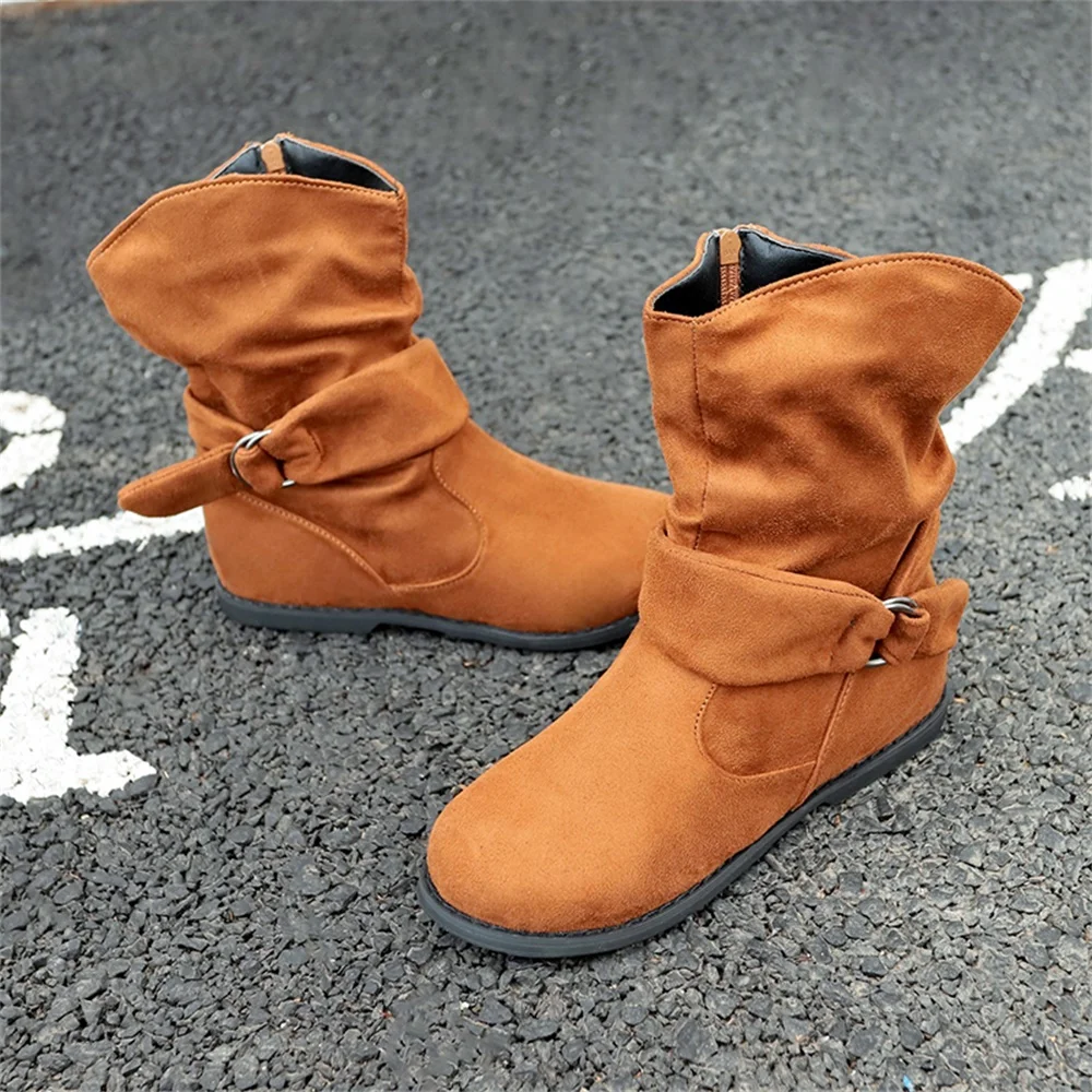 Женские ботинки на плоской подошве, демисезонные теплые ботинки с пряжкой в стиле ретро, повседневные сапоги до середины икры с закрытым носком, большой размер 35-43