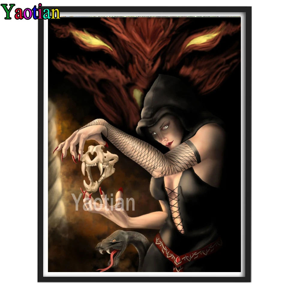 5d алмазная живопись, мозаика, полная квадратная Алмазная вышивка, ведьма, ужас, Череп, змея, алмазная живопись Декор для дома ручной работы