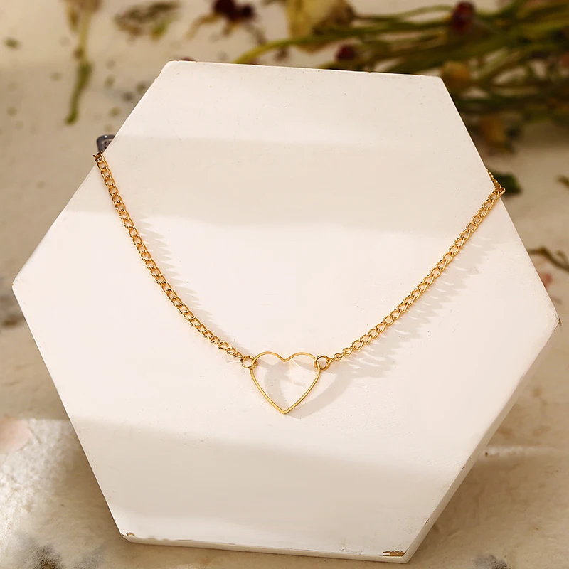 Винтажный милый кулон в форме сердца ожерелье для женщин Золотая це...