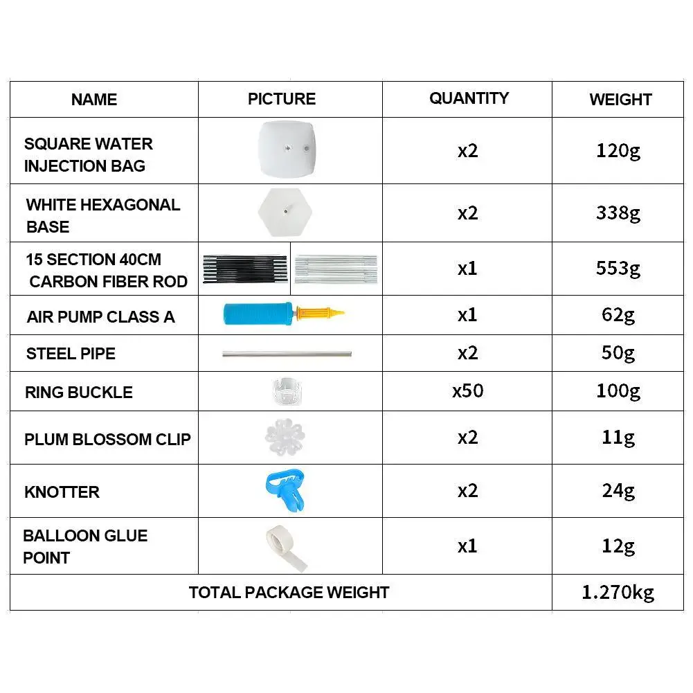 Пункт продажи товара:1. Модернизированный воздушный шар арочный комплект: В комплект входит 2 шт. сумка для воды (после наполнения водой, вес 20 фунтов), 2 шт. основание шасси, 14 шт. (40 см/15,7 дюйма) сложенный Стекловолоконный столб, 1 шт. ручной воздушный насос 2 шт. металлических стержней адаптера, 50 шт. зажимов для воздушных шаров, 2 шт. зажимов для воздушных шаров, 2 шт. зажимов для клубов, 1 шт. клей для воздушных шаров. Полный комплект поставляется со всем, что вам нужно, чтобы настроить воздушный шар набор для арки. Отличное украшение, чтобы сделать большой вход.2. Большой размер и качество: высокопрочный полюс из стекловолокна, стальные соединения, прочное основание из ПВХ, легко сгибаться, нелегко сломать. Высота и ширина дужки 10 футов и 9 футов, также можно регулировать по желанию, регулируя расстояние между основаниями3. Быстрый и простой в использовании: отлично подходит для воздушных шаров арки новичков. Легко устанавливается и отлично работает. Установите эту арку воздушного шара не более 5 минут. Все было в посылка, и было легко собрать и разобрать для использования в будущем4.DIY персонализированные воздушные шары арки: дизайн различных воздушных шаров арки стиль в соответствии с различными темами. Отличное украшение и дополнение к любым вечерние, добавьте много веселья и персонажа для ваших вечеринок. Создайте приятную атмосферу для всех видов Вечерние торжества и придайте большей популярности5. Большое украшение арки воздушного шара: арочный комплект с воздушным шаром легко перемещается по различным сценам, подходит для романтических конфессий, юбилея, выпускного, украшения магазина, свадебного украшения, украшения событий, церемонии открытия или любых особых мероприятий6. В комплект не входит воздушный шар на картинкеСпецификация продукта:Название продукта: арочный комплект с подставкой для воздушных шаровМатериалы: стекловолокно, ПВХРазмер (прибл.): АркаВысота: 9 футов/2,7 метровШирина: 10 футов/3 метраЦвет: Mulit-ColorВес (прибл.): 1,3 кг/2.87lbПосылка включает:2 шт мешок для воды (после наполнения водой он весит 20 фунтов)2 шт. основание шасси14 шт (40 см/15,7 дюйма) в сложенном стекловолокне1 шт. ручной воздушный насос2 шт. металлические стержни адаптера50 шт. зажимы для воздушных шаров2 шт. ноттер воздушного шара2 шт. зажим для клубов1 шт. воздушный шар КлейПримечание:1. Замеры сделаны вручную, поэтому возможны отклонения на 1-2 см.2. В связи с использованием разных по светильник и Экран разница товар точно такой же, как это Цвет может быть S светильник ly отличается из-за характеристик монитора компьютера.3. В комплект не входит воздушный шар на картинкеГарантия обслуживания:Если у вас есть какие-либо вопросы о нашей продукции, пожалуйста, свяжитесь с нами, мы предоставим Вам качественные услуги и лучшие решения.