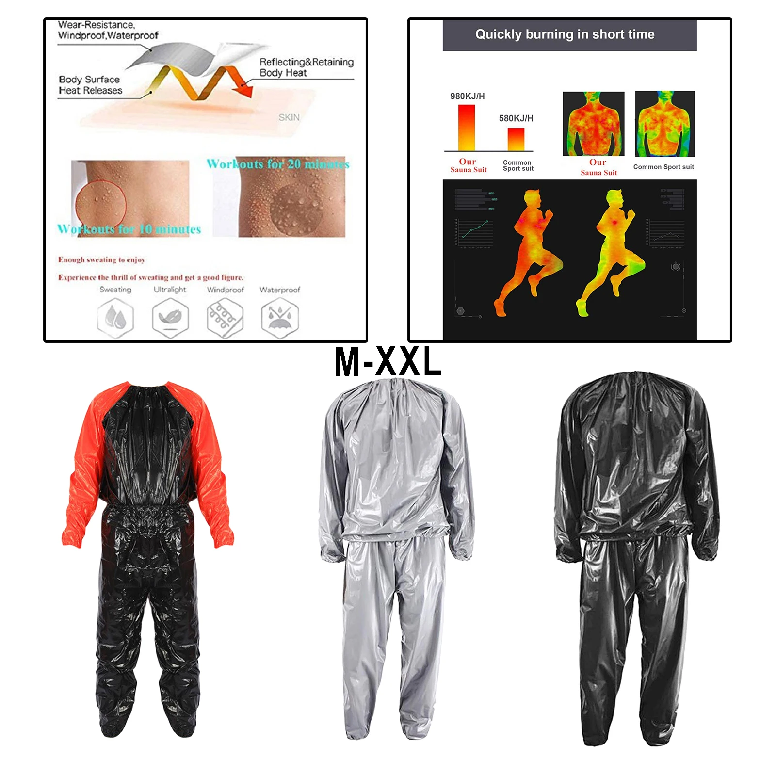 2 шт., костюм для фитнеса и сауны, изготовленный из высококачественного ПВХ материала, легкий и ультратонкий, с эластичным подолом и манжетами, обеспечивают наиболее комфортную посадкуРегулируемая эластичность обеспечивает ветронепроницаемость, водонепроницаемость и сохраняет тепло вашего тела, чтобы увеличить потПредназначен для удаления токсинов из организма, ускоряет сжигание жира и повышает эластичность кожи при похудении.Обеспечивает максимальную прочность и высокую производительность-прочный и устойчивый к разрыву.Отлично подходит для снижения веса, бега, прыжков, езды на велосипеде и игр в мячи или других видов активного отдыха в помещении