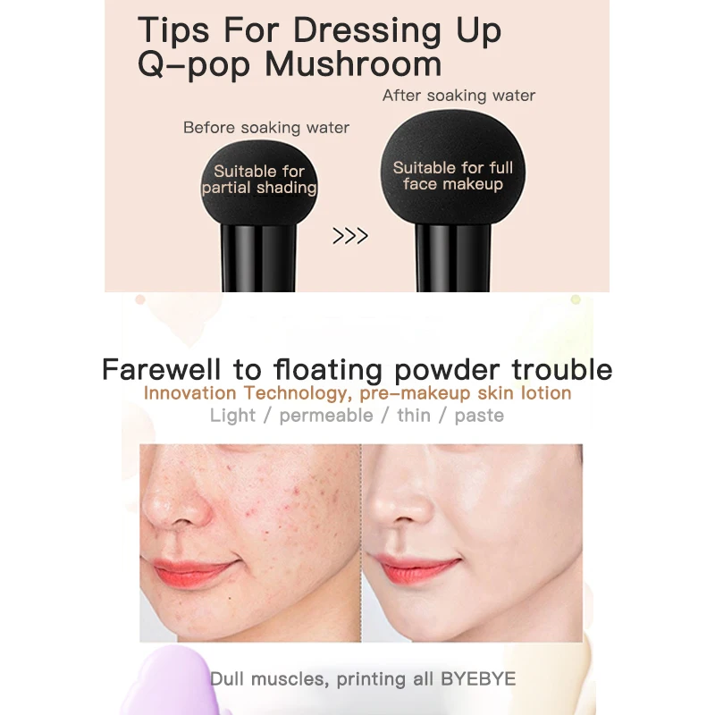 Основа для макияжа, кисточка в форме гриба, маскирующий макияж натуральный Осветляющий дышащий BB-крем для лица, стойкая косметика, макияж TSLM1