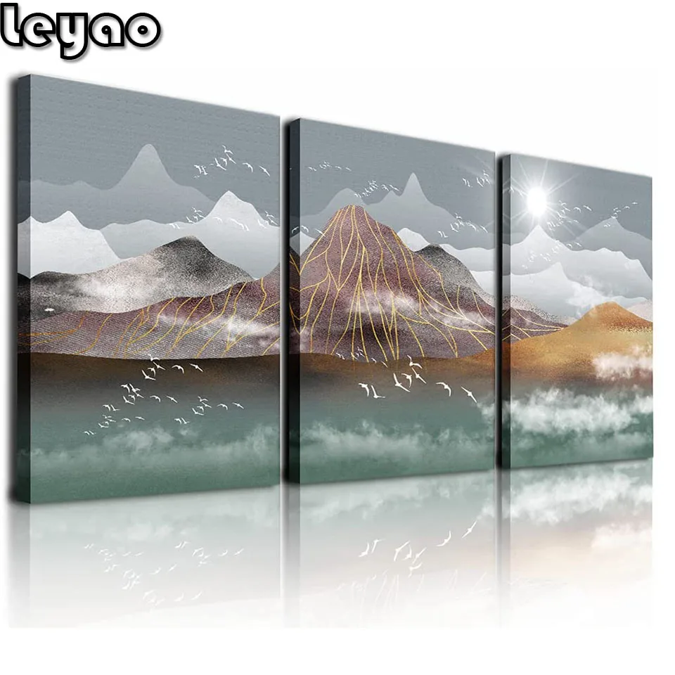 5D алмазная картина Золотая горная Триптих Алмазная вышивка полная круглая/квадратная Diy Вышивка крестиком домашний декор