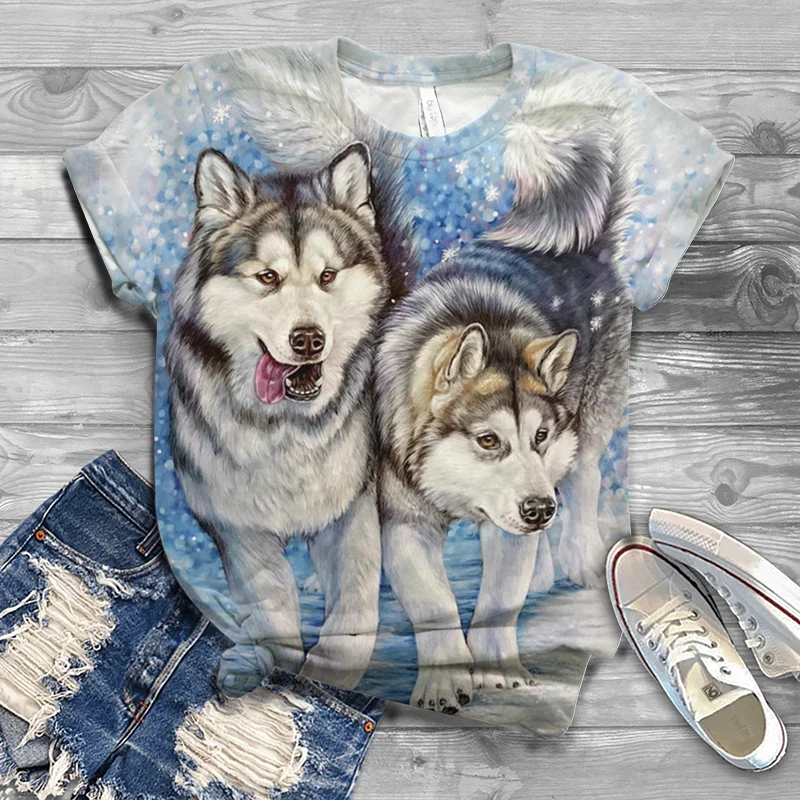 Футболка женская летняя с коротким рукавом и 3D принтом волка