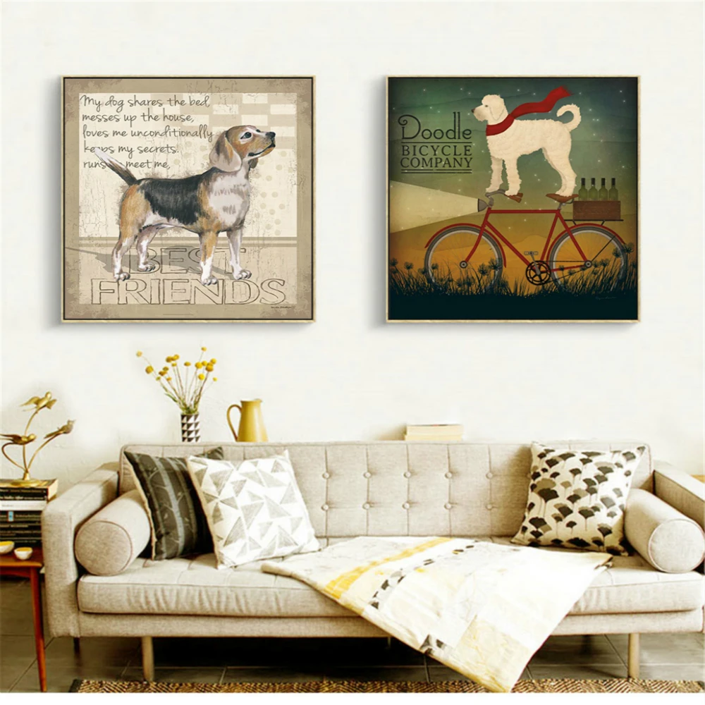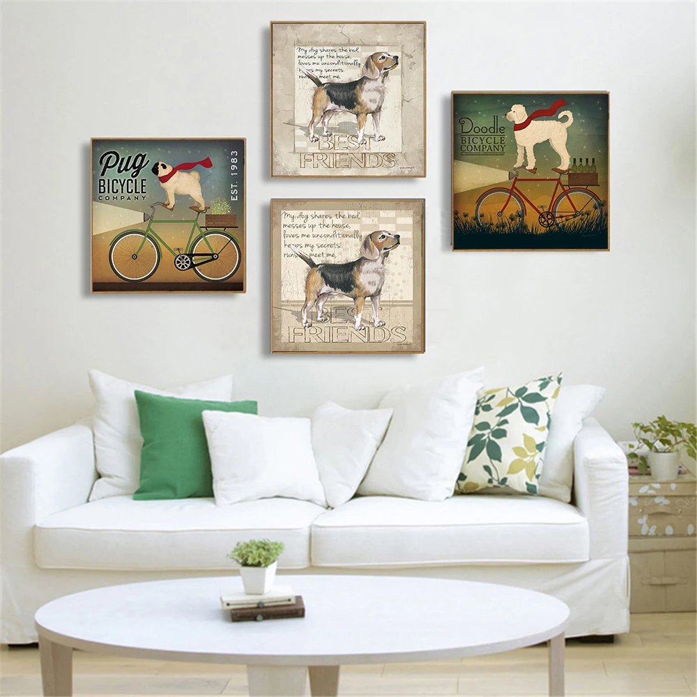 Домашний декор, настенный постер с изображением собаки, мопса, велосипеда, цитаты, настенные картины для гостиной, Абстрактная Картина на холсте, Куадрос