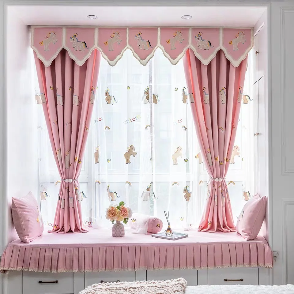 Шторы для гостиной в Корейском стиле принцесса розовая девушка Ресторан вышивка детская мультяшная свадебная комната столовая спальня