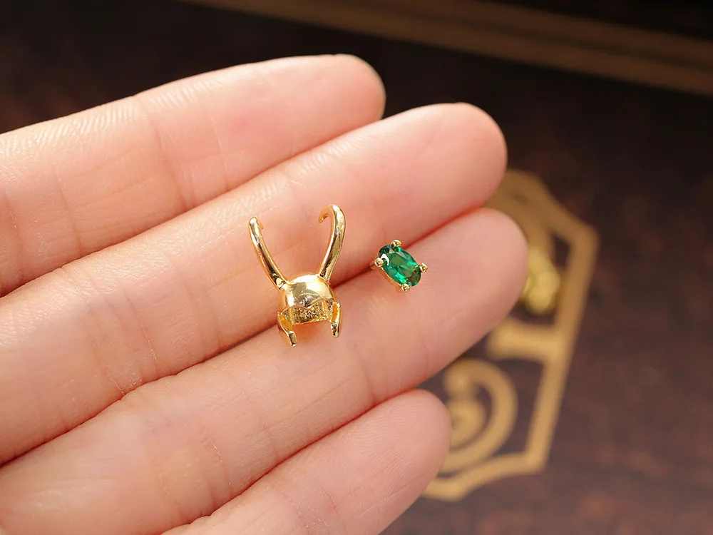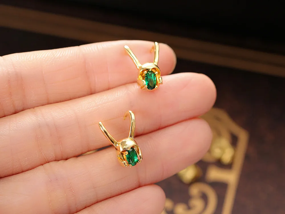Женские серьги-гвоздики Loki с зелеными кристаллами, шлем в виде короны, золотистые серьги-гвоздики, аксессуары для ушей, прямые поставки KBE002
