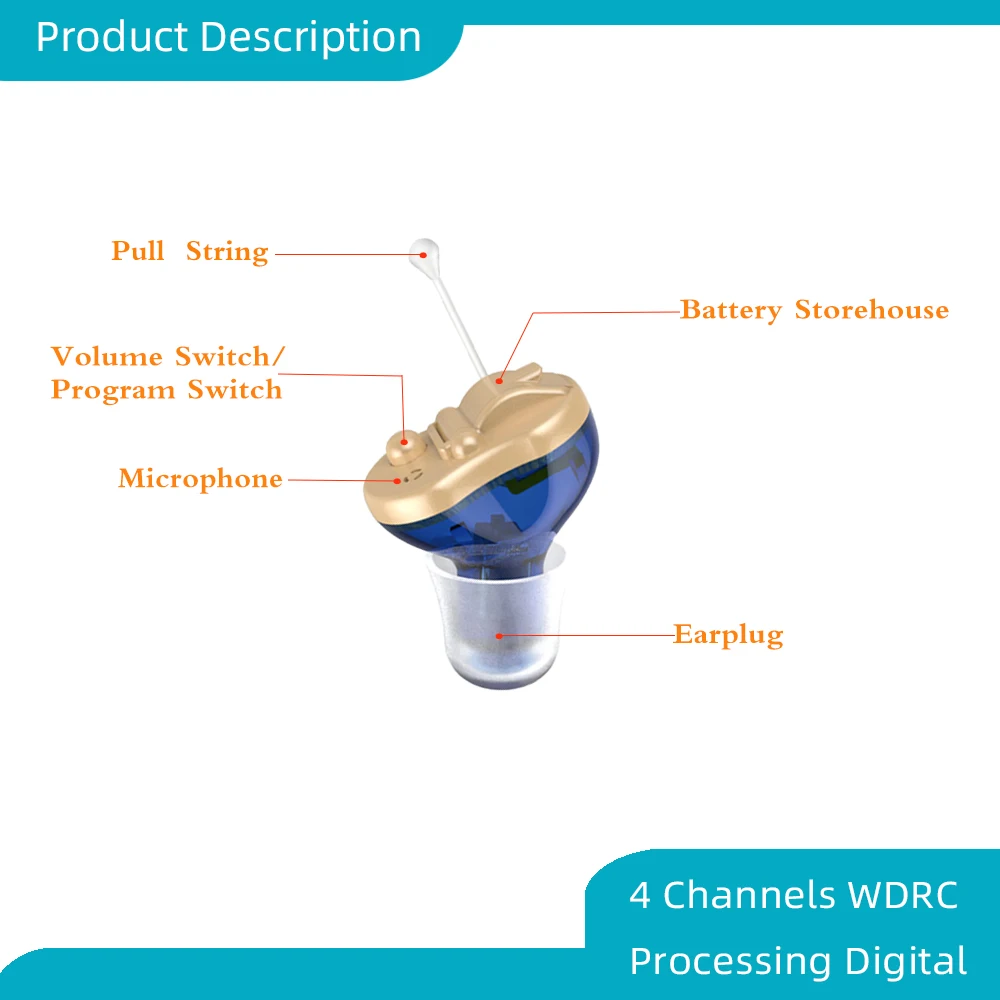Цифровой слуховой аппарат MelingHearing Q50 CIC, 4 канала, 8 полос, миниатюрный настраиваемый звуковой усилитель, невидимый слуховой аппарат, Прямая поставка