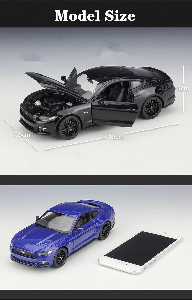 Классическая модель спортивного автомобиля Ford Mustang GT 1:24, модель литая металлическая игрушечная машинка, Коллекционная модель автомобиля, детская игрушка в подарок