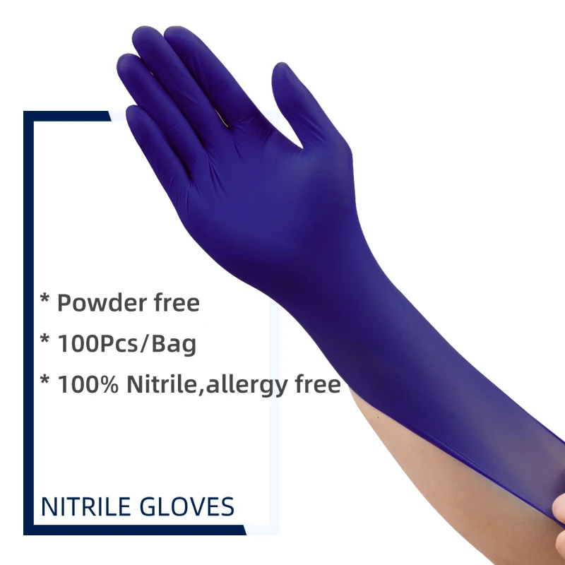 Нитриловые перчатки, 100 шт., пищевые водонепроницаемые одноразовые перчатки AllergyFree для кухни, рабочие безопасные перчатки, 100% нитриловые перчатки для механика