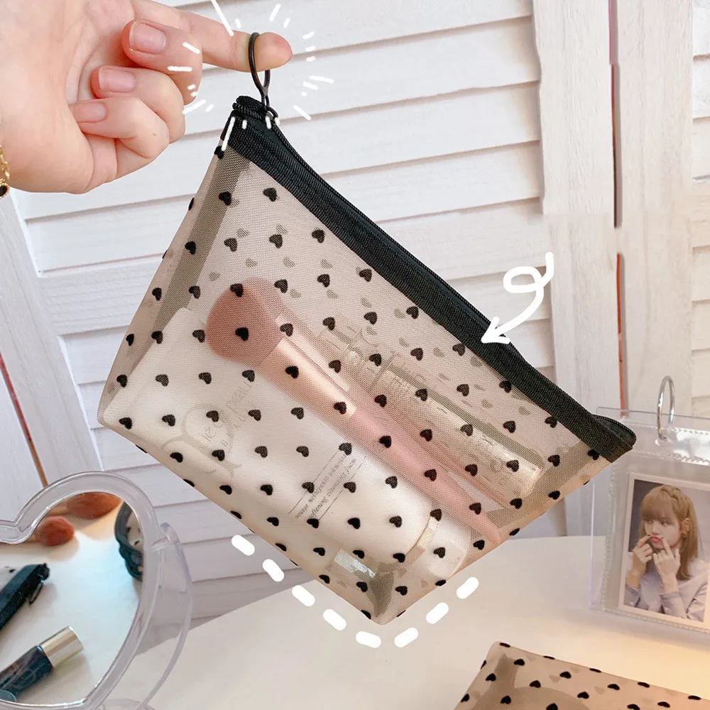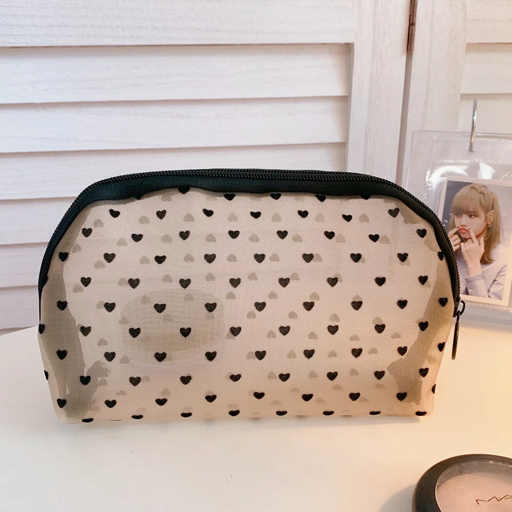 Косметичка черная в форме сердца сетчатая косметичка на молнии Косметический Чехол для больших туалетных принадлежностей для женщин и мужчин дорожные косметички