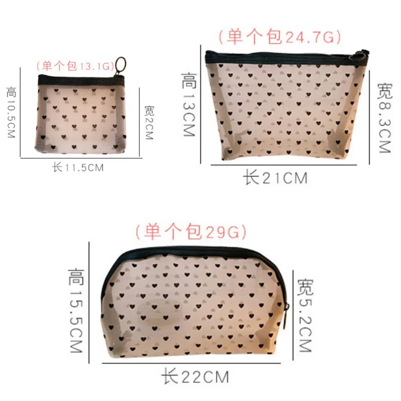 Косметичка черная, сетчатая, в форме сердца, на молнии, для красоты...