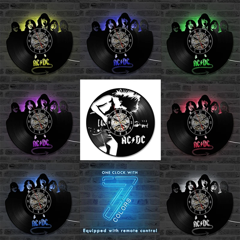 Настенные часы AC DC, современный дизайн, музыкальный рок-браслет, винтажные виниловые настенные часы CD, домашний декор, подарки для фанатов