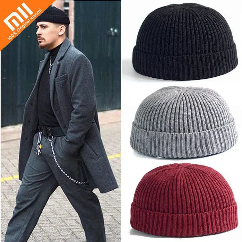Женские вязаные шапки Xiaomi Skullcap, мужские шапки бини, зимние ретро шапки без полей, мешковатые кепки с дыней, мужские шапки-бини в рыбацком стиле