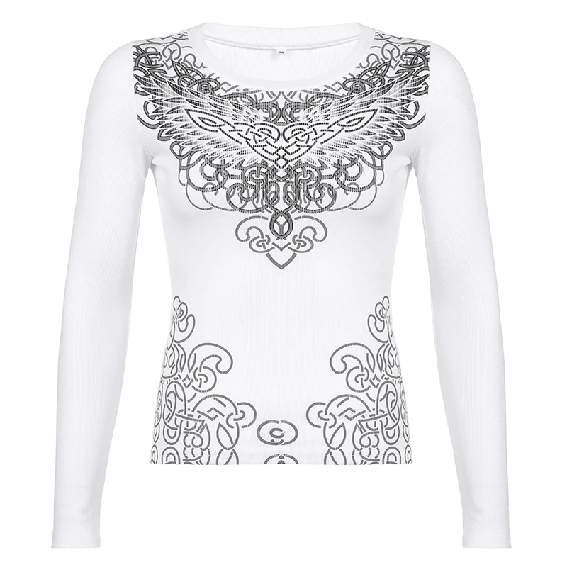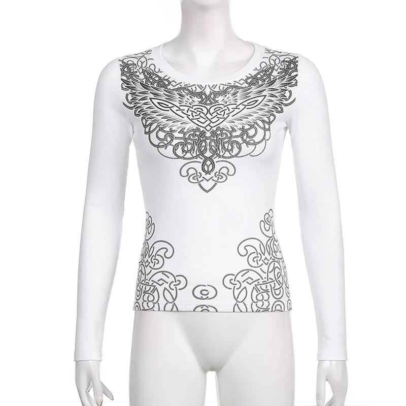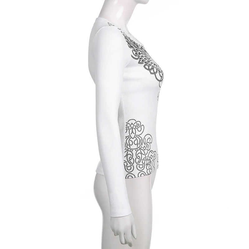 Женская футболка с длинным рукавом, круглым вырезом и принтом