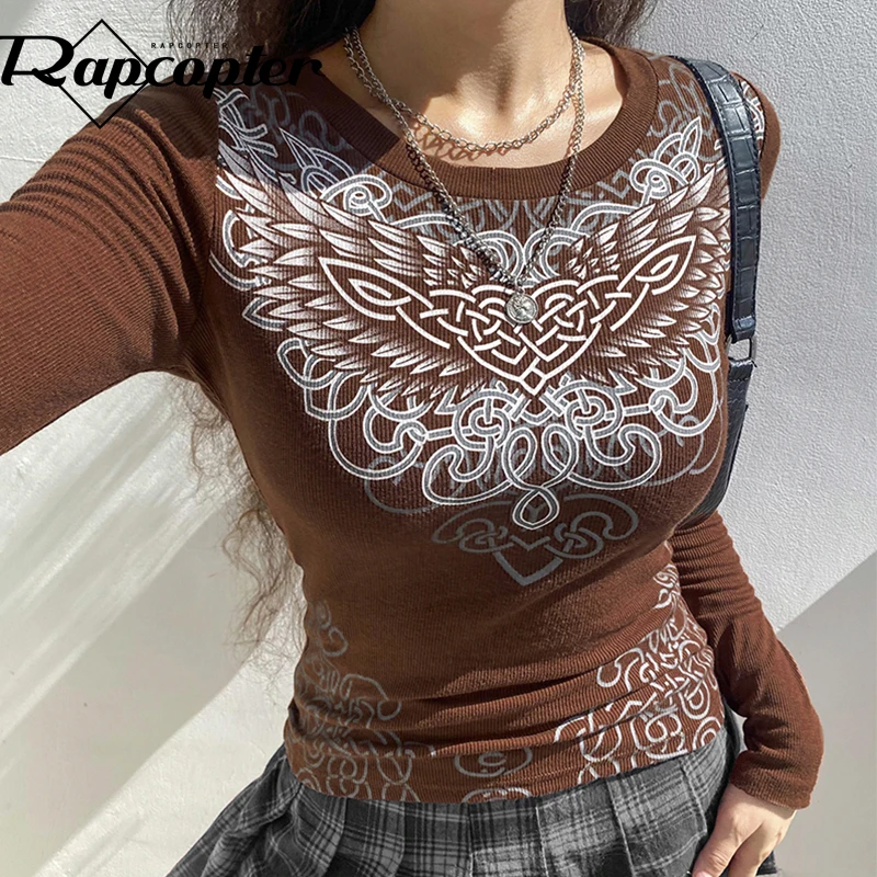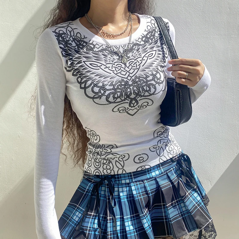 Хлопковые ретро-футболки с принтом гранж, Милая женская уличная оде...