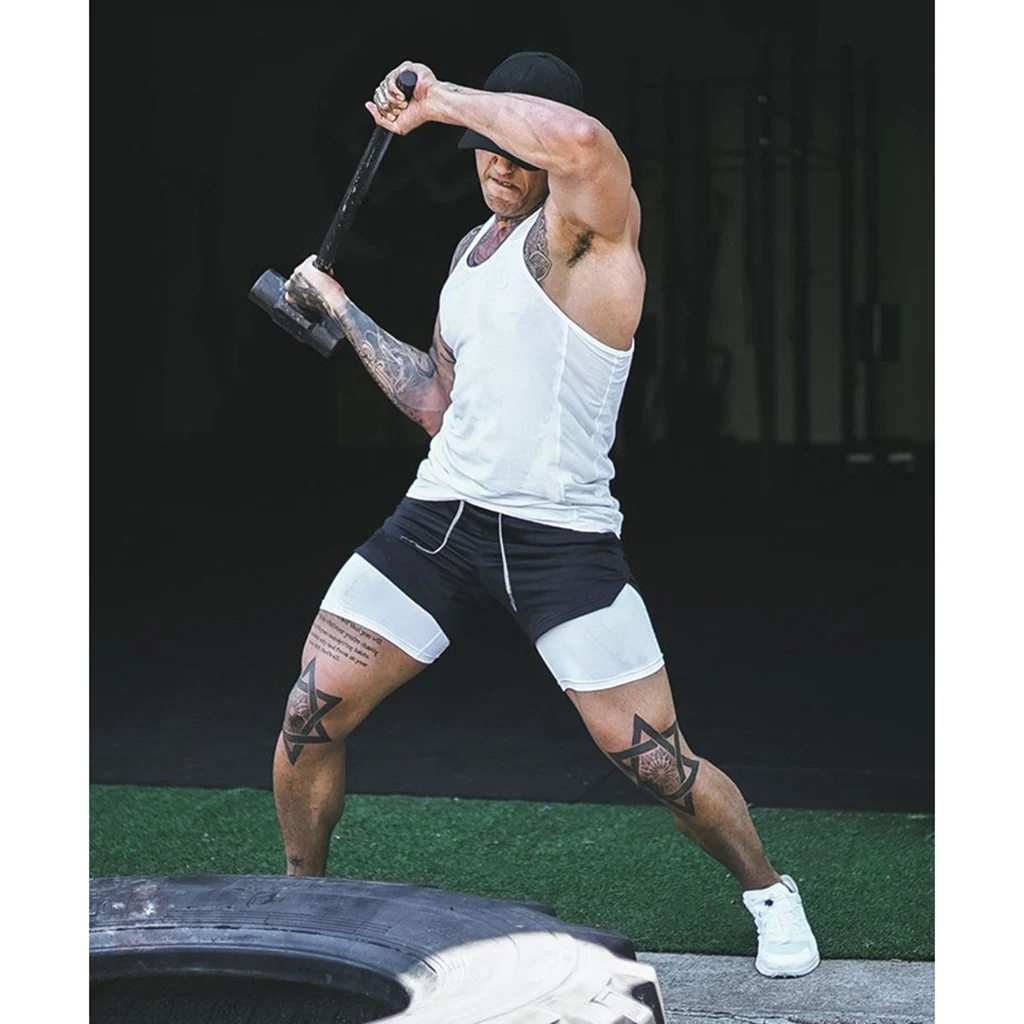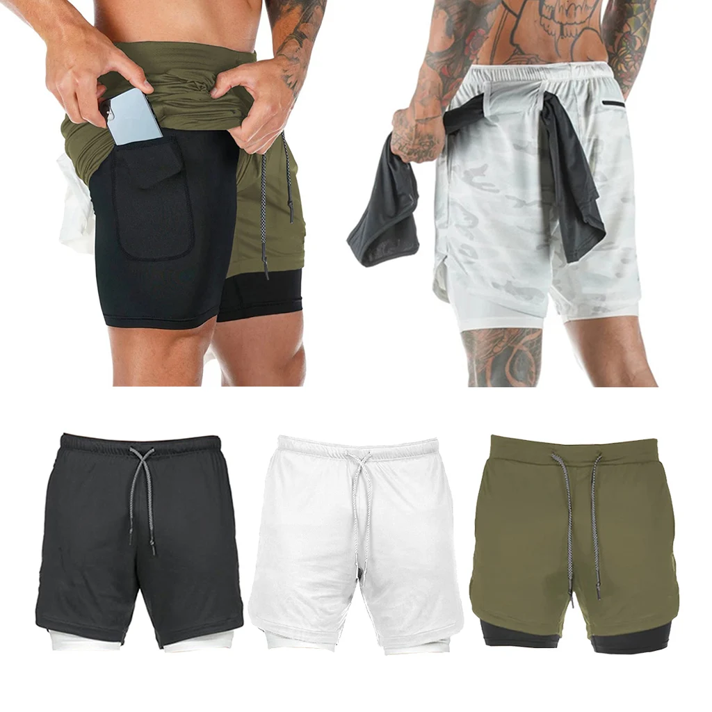 Мужские шорты для бега 2 в 1 с подкладкой, с короткими компрессионными карманами на молнии, Нижний базовый слой для фитнеса