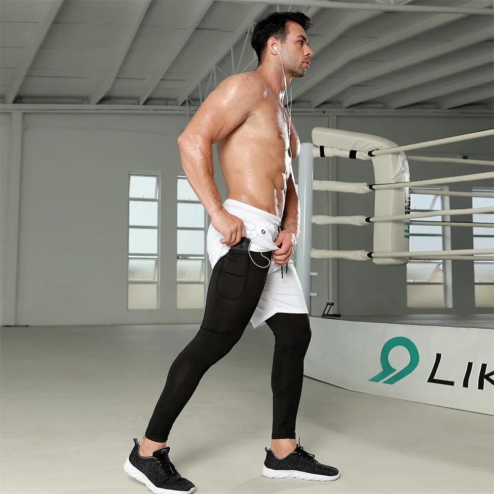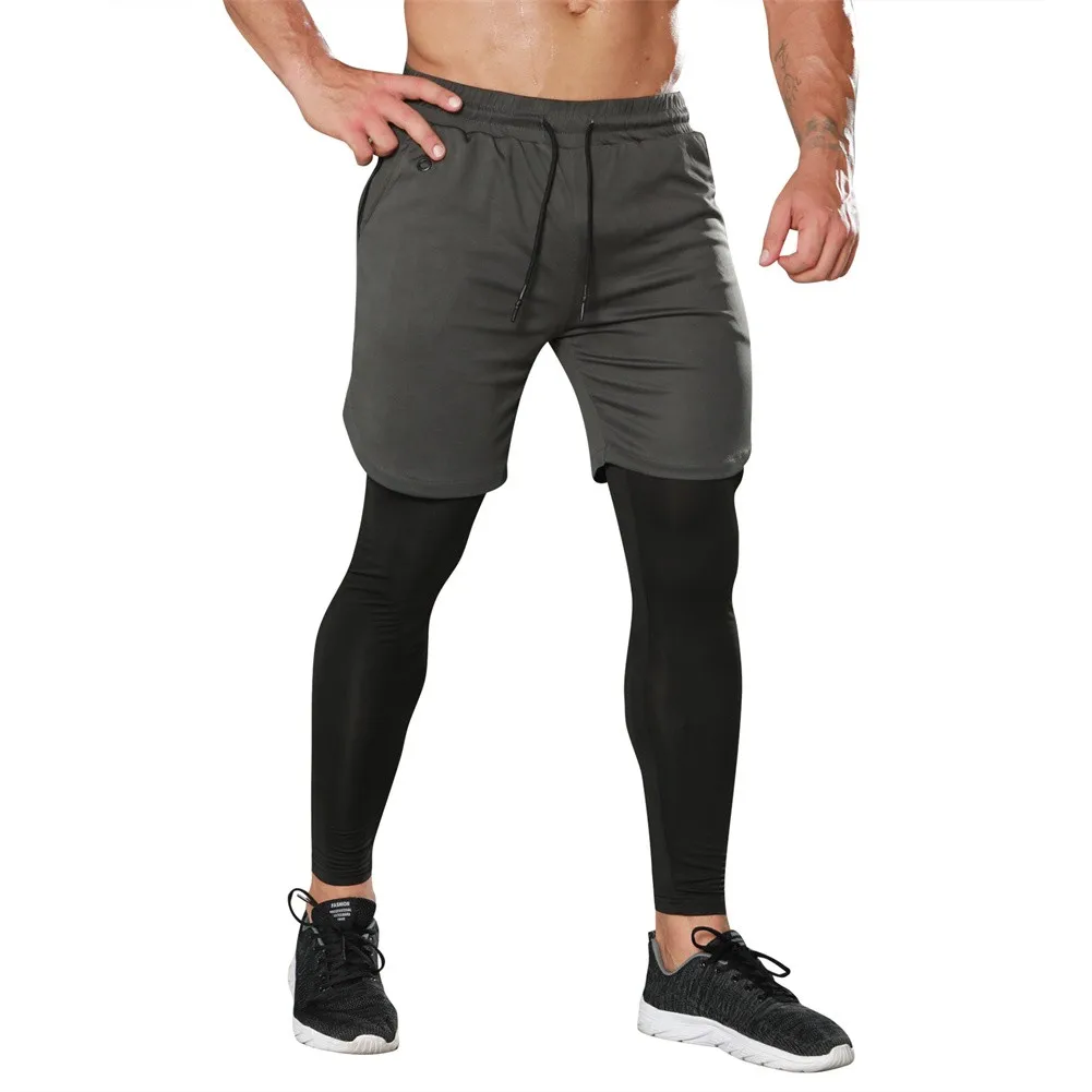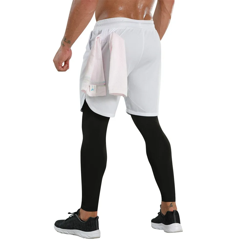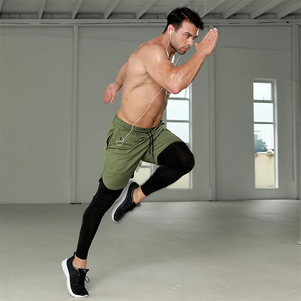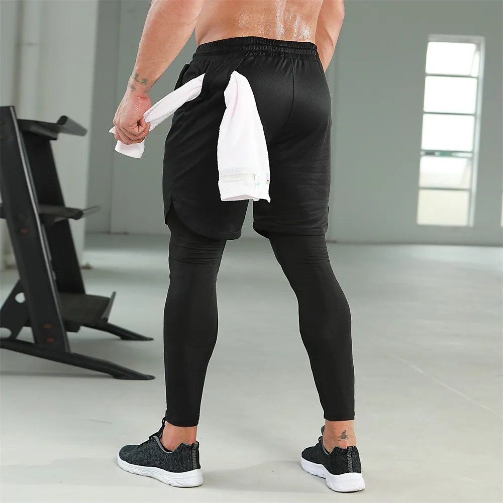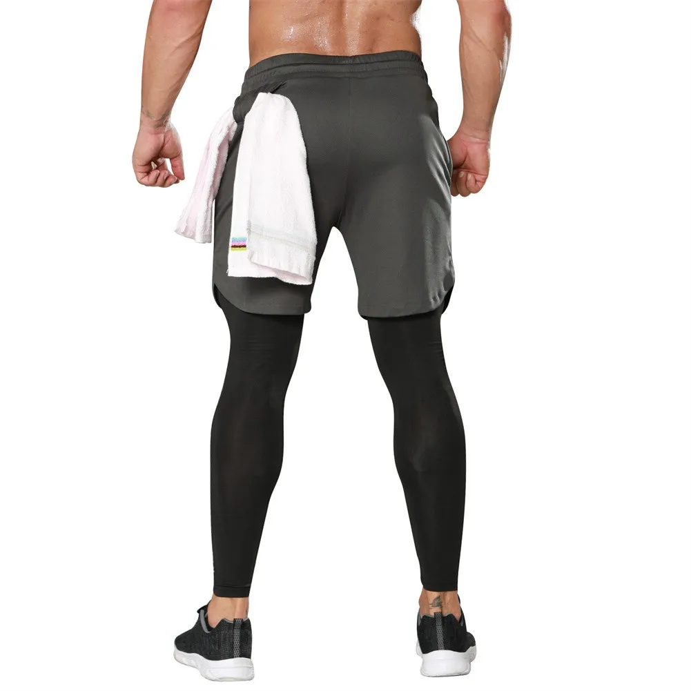 Мужские трико для бега и фитнеса, 2 в 1, двухслойные эластичные трико для бега, одежда для тренировок, Компрессионные спортивные шорты для мужчин