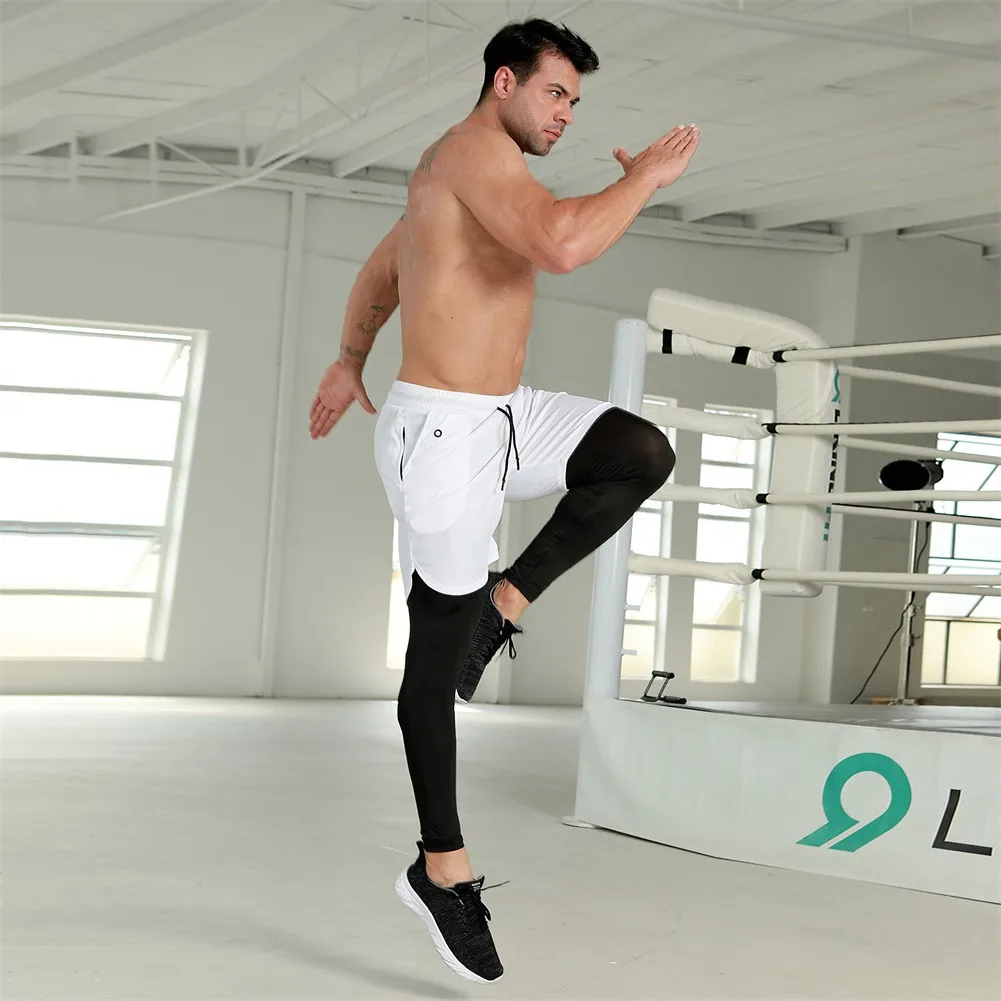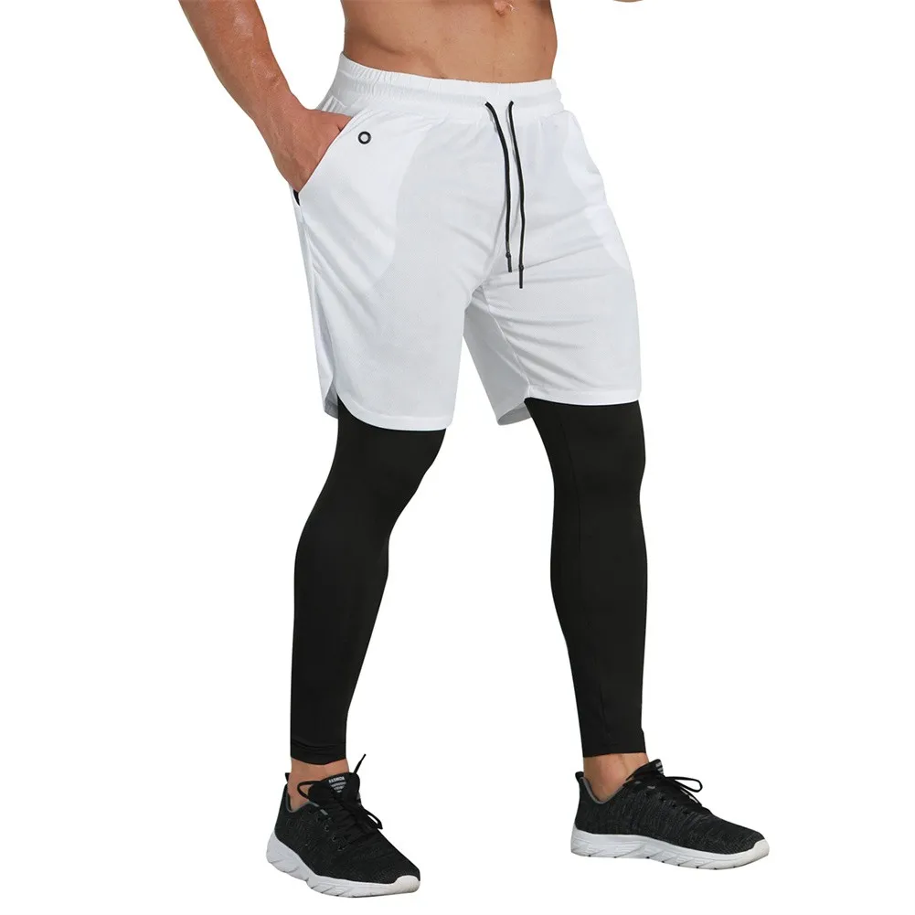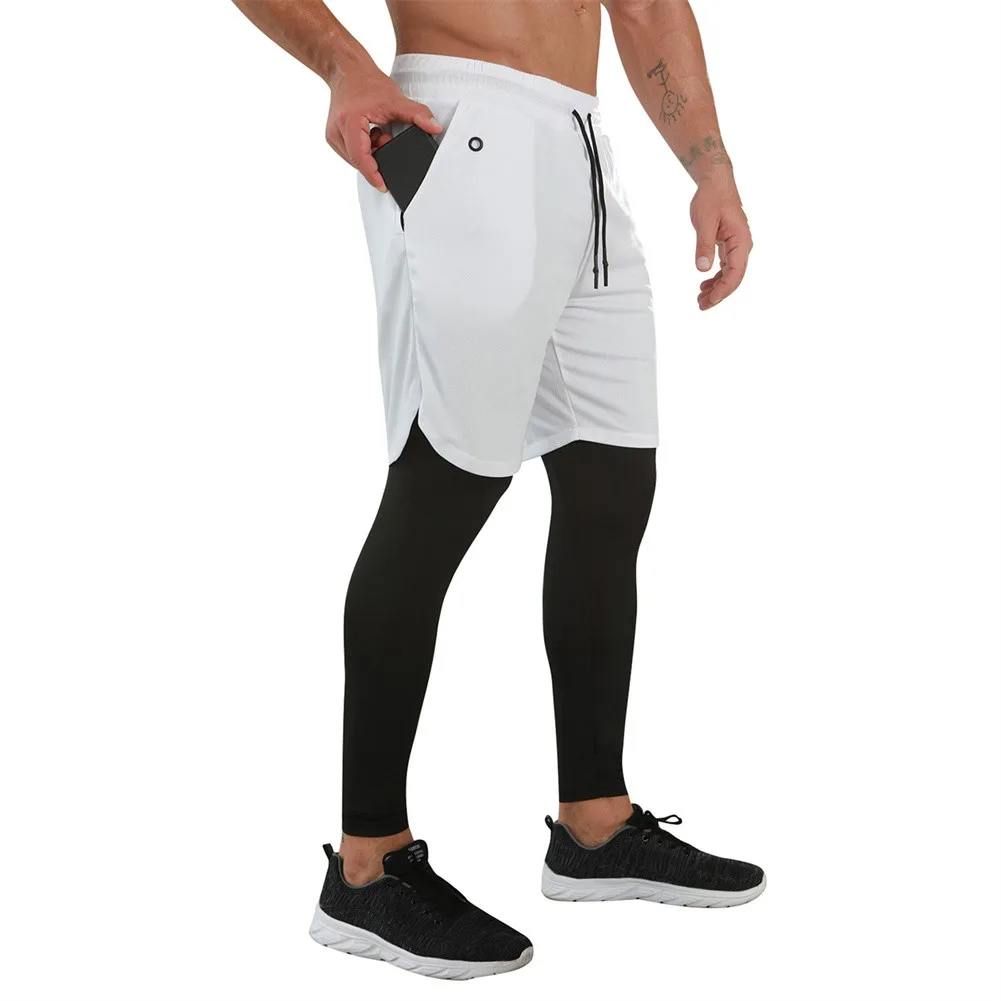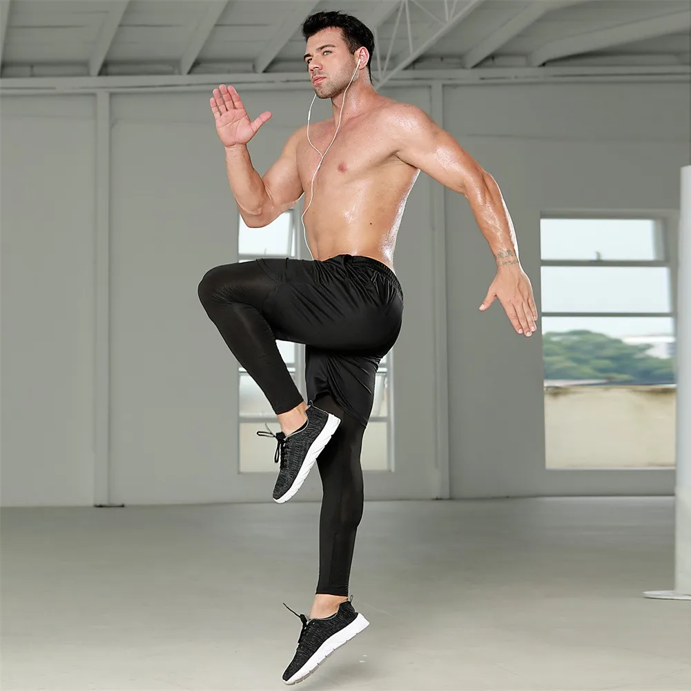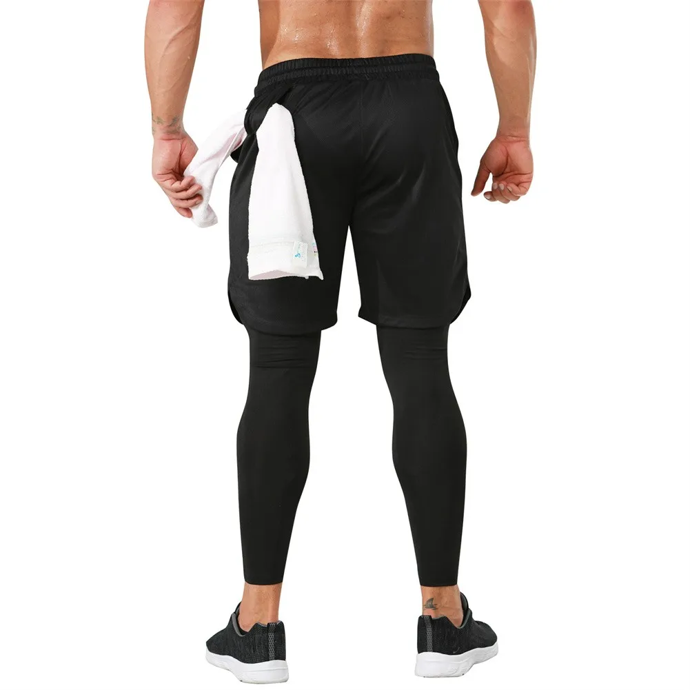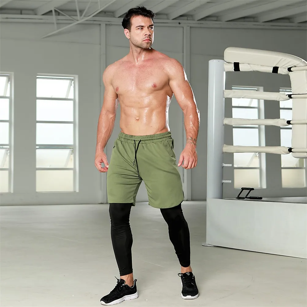 Мужские трико для бега и фитнеса, 2 в 1, двухслойные эластичные трико для бега, одежда для тренировок, Компрессионные спортивные шорты для мужчин