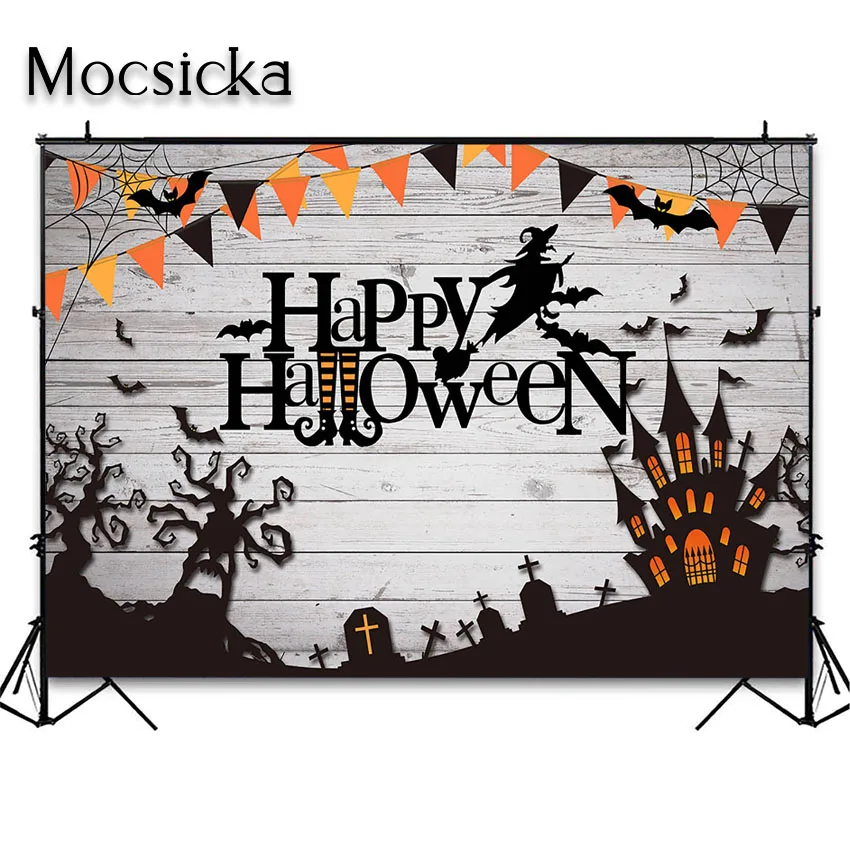 Mocsicka Хэллоуин фон деревянная стена страшный ночной замок вечерние шения для вечеринки портрет фотография фон для фотостудии