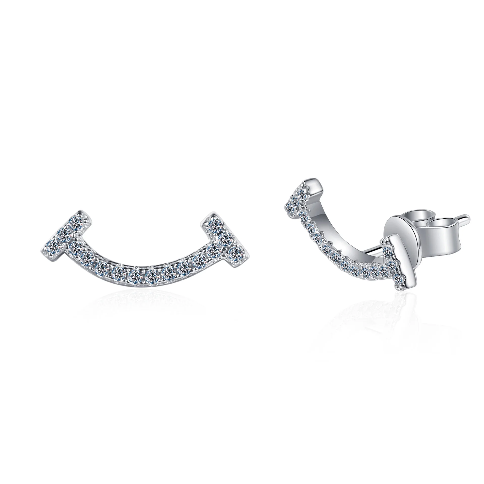 Женские серьги-гвоздики из стерлингового серебра с бриллиантами 0.18ct, серьги-гвоздики с бриллиантами и смайликами, с фрикционными спинами, ювелирные украшения