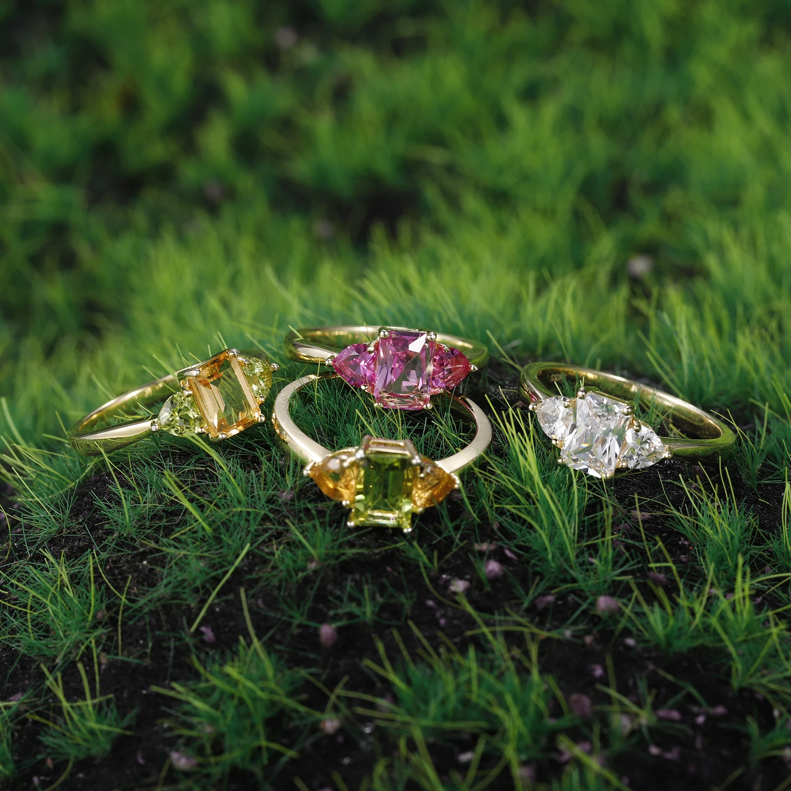 Уникальное кольцо с тремя камнями Gem's Beauty, кольца с шпинелью и...