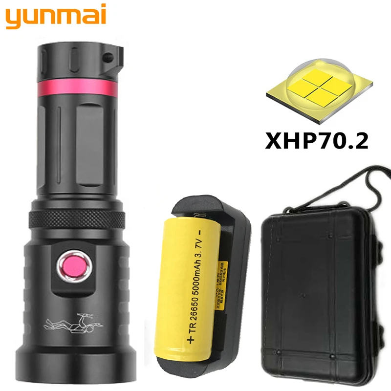 Военный светодиодный фонарь XHP70.2, водонепроницаемый, для подводной съемки, 100 м, источник питания, 26650, 18650, Аккумуляторный светильник онарь