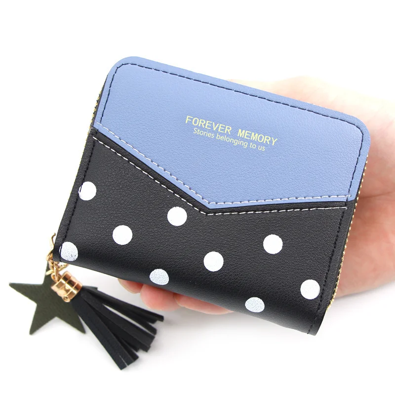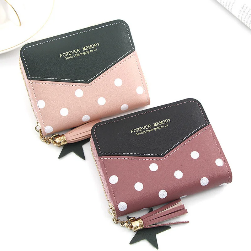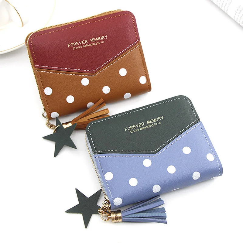 Модные кошельки для женщин, Дамский короткий кошелек в горошек, Женский кошелек с кисточкой, кошелек для монет, многофункциональный чехол для карт, сумка для денег