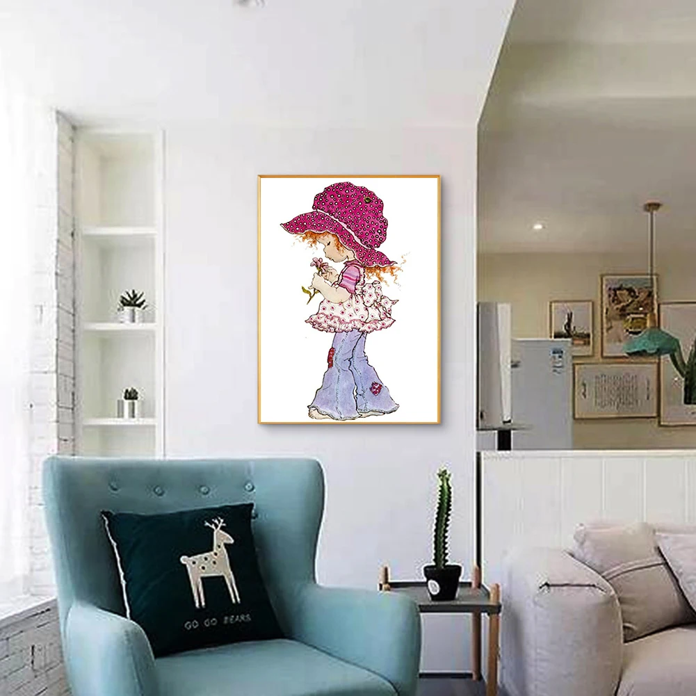 Алмазная живопись сделай сам, Весенняя вышивка, серия маленькая девочка, круглая Алмазная вышивка крестиком, украшение для дома, подарок