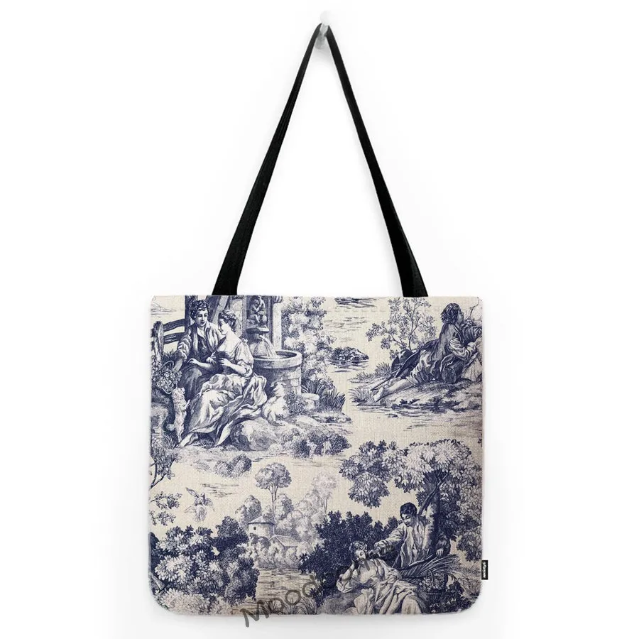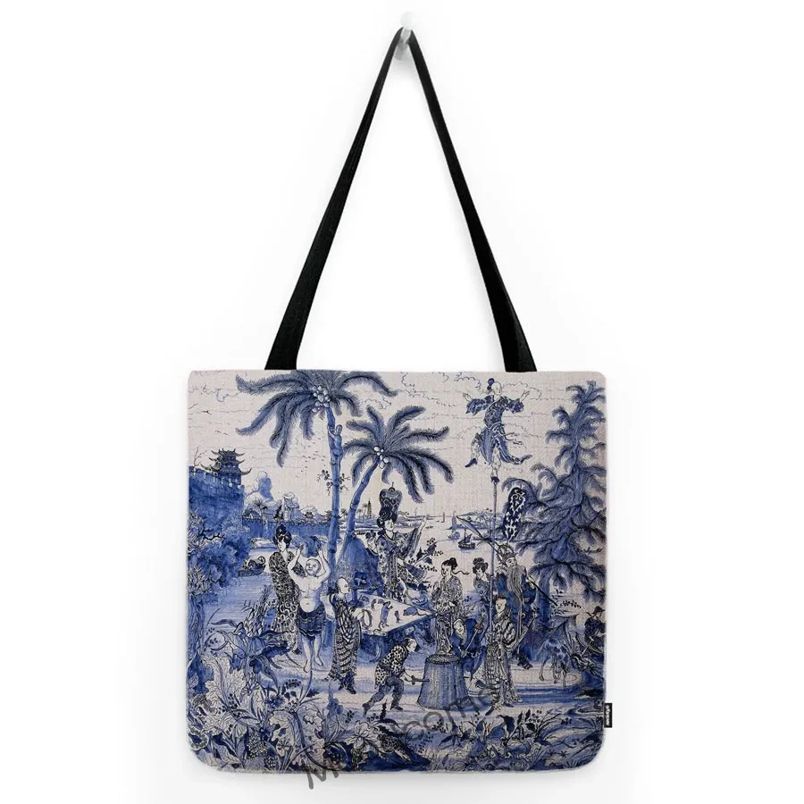 Темно-синяя, черная, белая газета, постер, стиль, холст, мотив, винтажная водостойкая Льняная сумка-тоут, сумка через плечо