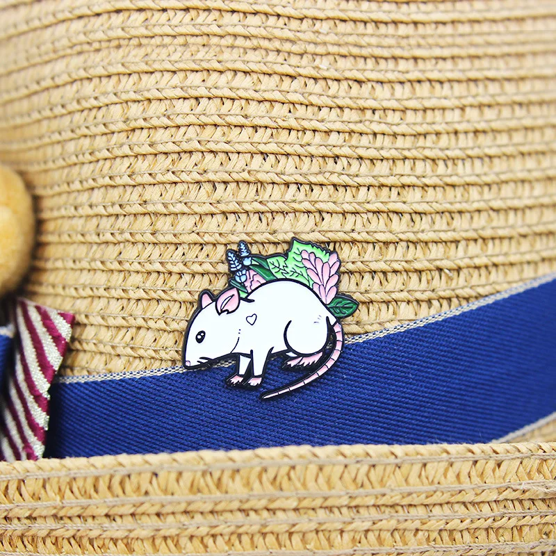 Новое поступление 2021, эмалированная подвеска с изображением белых крыс, животных, крыс, цветов, растений, значок, ювелирное изделие, подарок